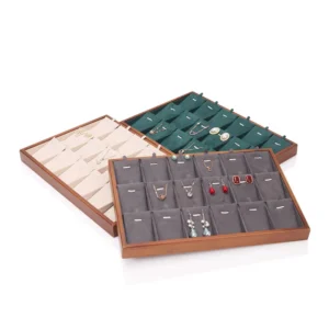 Custom Jewelry Display Tray Stackable Wooden Beige Gray Ring Earring Pendant Jewellery Display