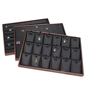 Leather Pendant Necklace Earrings Ring Shelf Storage Box Jewelry Display Tray