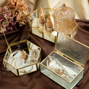 Retro Gold Metal Glass Jewelry Box Dresser European Jewelry Storage Display Tray