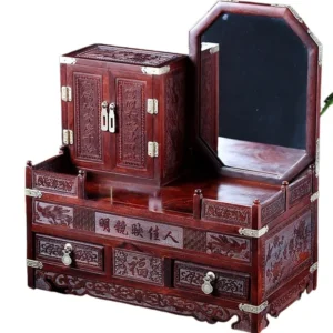 High-end Mahogany Red Rosewood Desktop Dressing Table New Chinese Style Small Carved Makeup Mirror Jewelry Box