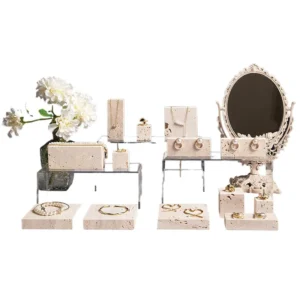 LY Natural Stone Beige Travertine Decoration Jewelry Display Stand Set