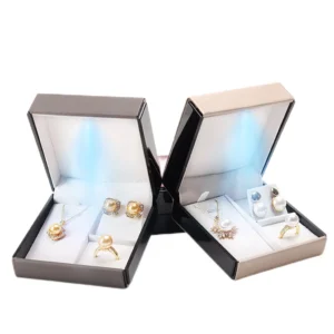 Custom Logo Three-Piece Jewelry Storage Box PU Leather Jewelry Gift Box with LED Light for Necklace & Ring Display