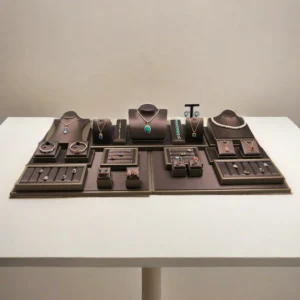 Jewelry Packaging & Display for Store Luxury Props Black PU Leather Stand Set
