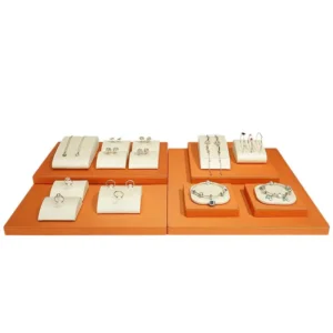 Jewelry Props Beige Leather Counter Display Set Necklace Ring Jewelry Storage Display Stand