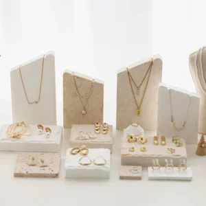 LY Natural Stone Beige Travertine Decoration Jewelry Display Stand Set