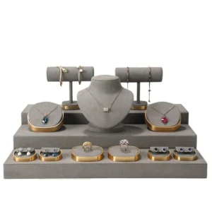 Microfiber Metal Gray Jewelry Display Props Jewelry Necklace Ring Bracelet Display Stand Suit