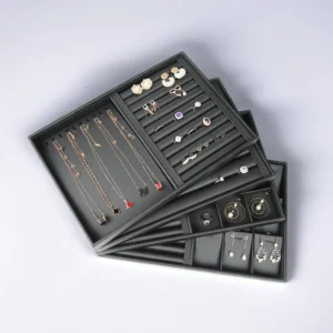 Wholesale Gray Velvet Jewelry Tray 35cm Stackable Bracelet Necklace Ring Display Tray for Jewelry Display Cabinet