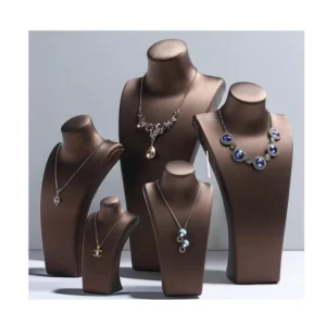 High-end Jewelry Necklace Display Brown Pu Leather Portrait Jewelry Display Stand Set Pendant Necklace Bust