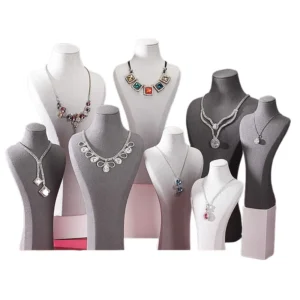 Jewelry Store Window Decoration Microfiber Necklace Display Item Set Portrait Display Stand