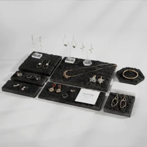 Spot Black Brushed PU Leather Jewelry Display Stand Set Elegant Container for Displaying Your Treasures