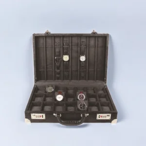 Luxury Pu crocodile Pattern Leather Collectible Aluminum Watch Case Carrying Storage Suitcase with Pillows