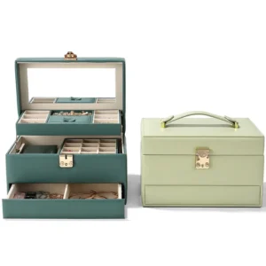 Simple Flip-top Leather Large Jewelry Storage Box with Mirror Multifunctional Jewelry Box