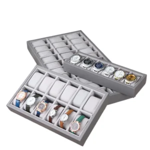 Gray Leather Watch Counter Display Rack Storage Watch Display Tray