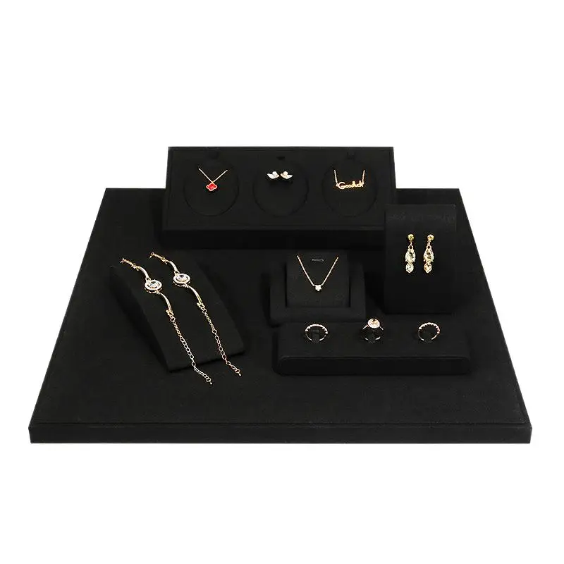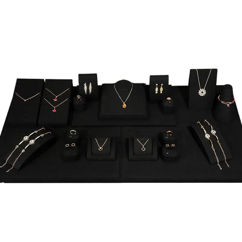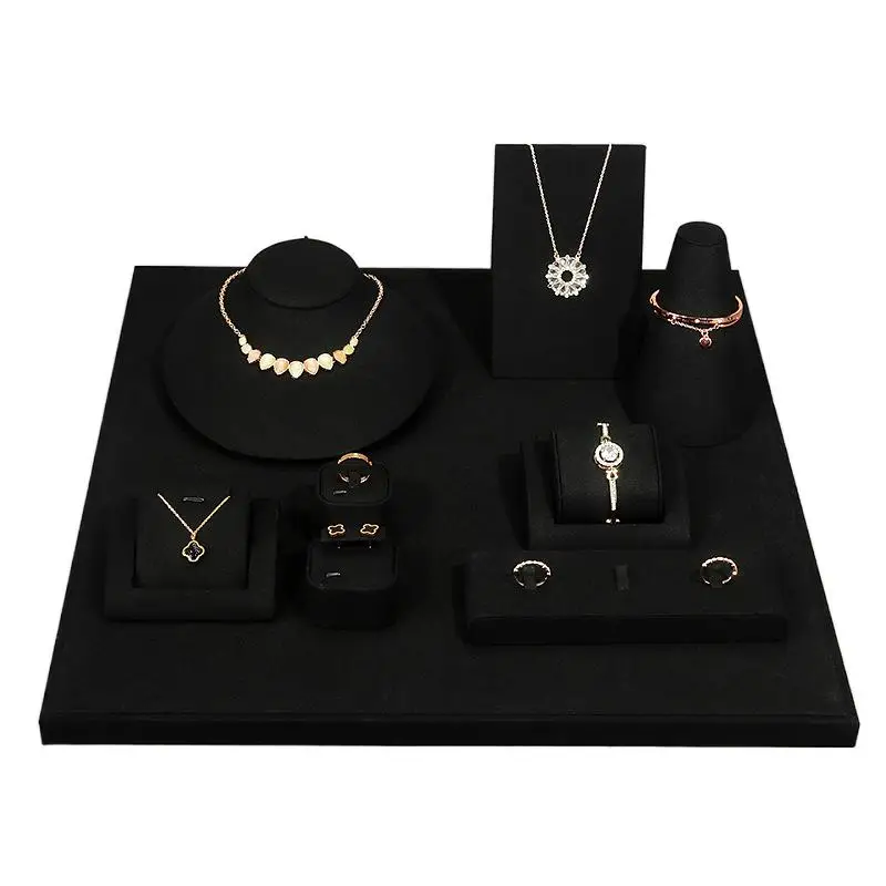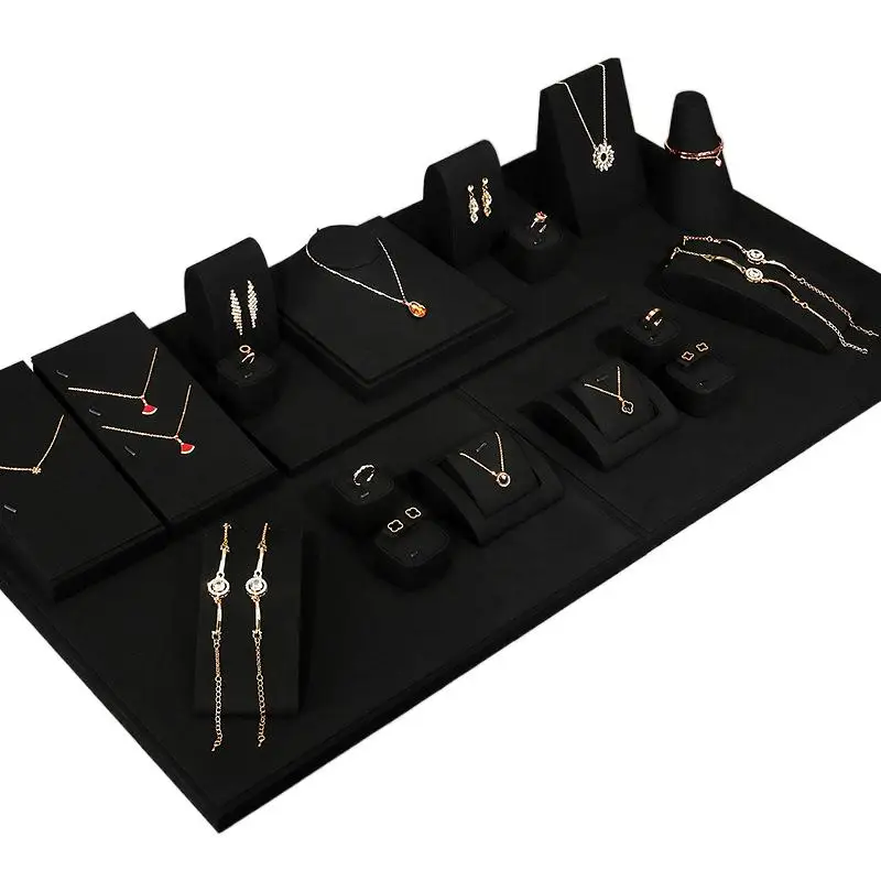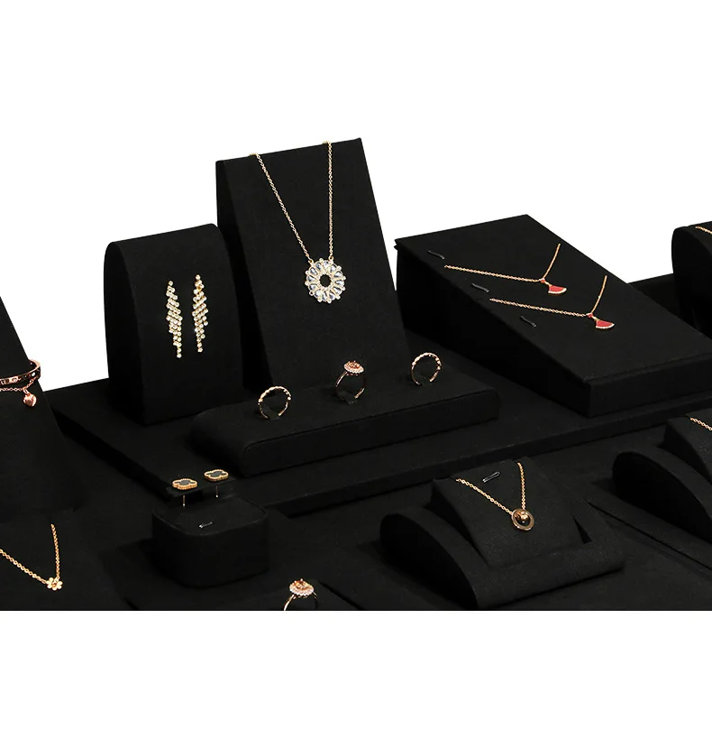 Black Microfiber Jewelry Ring Necklace Earring Stand Silver Jewelry Display Jewelry Display Set