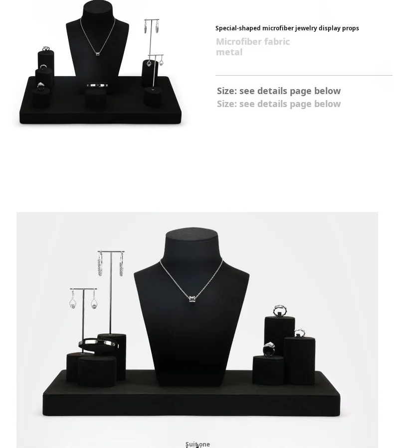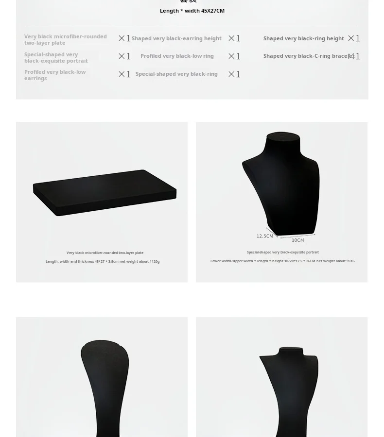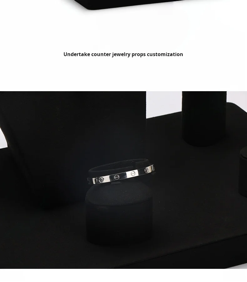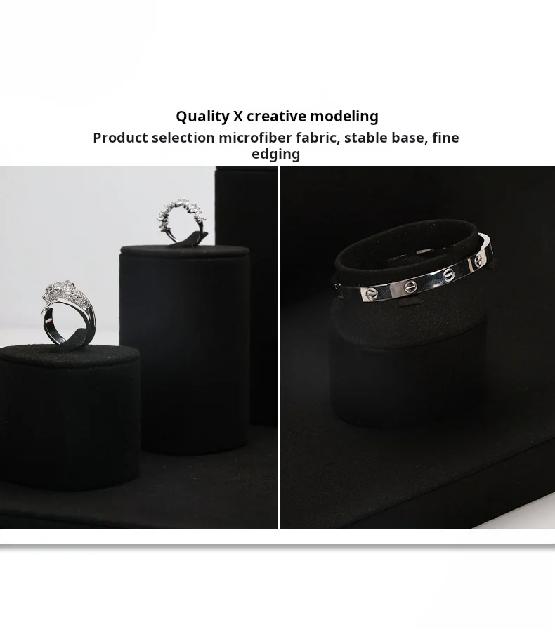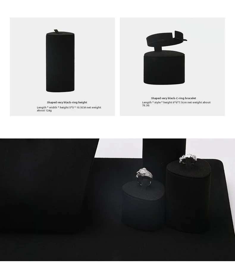Black Microfiber Necklace Ring Earrings Jewelry Display Stand Prop Set