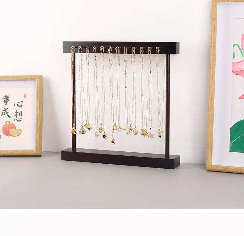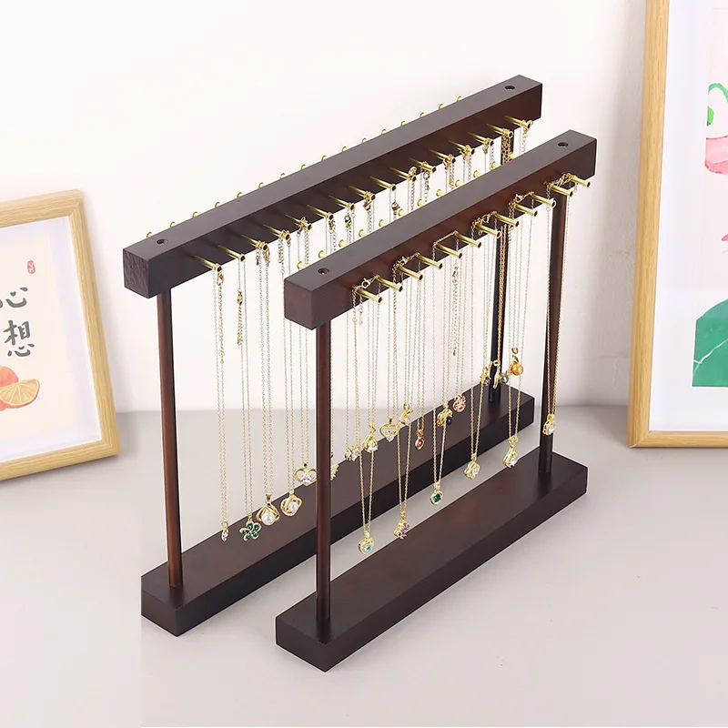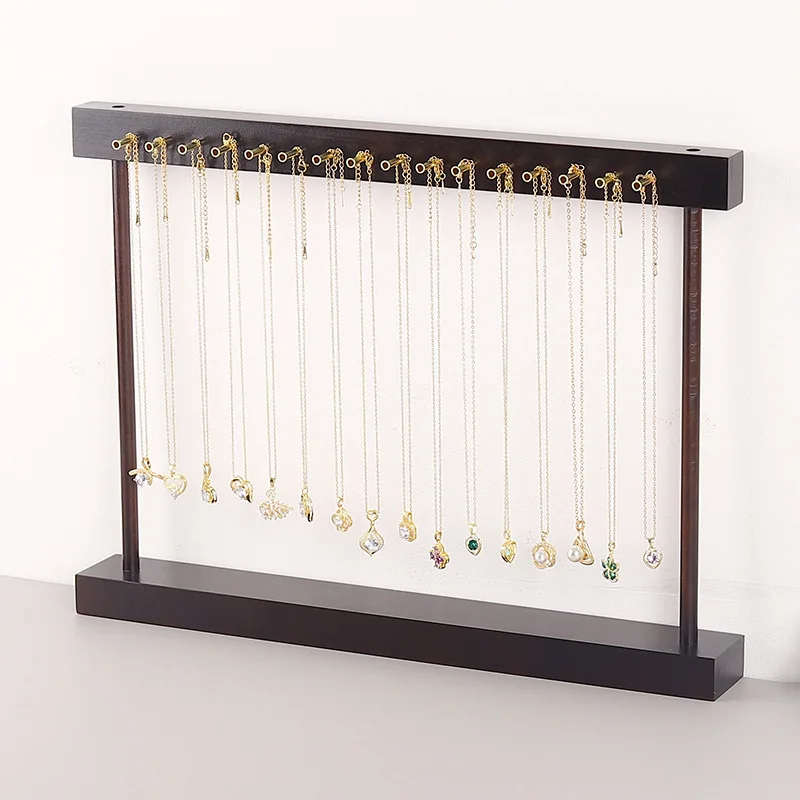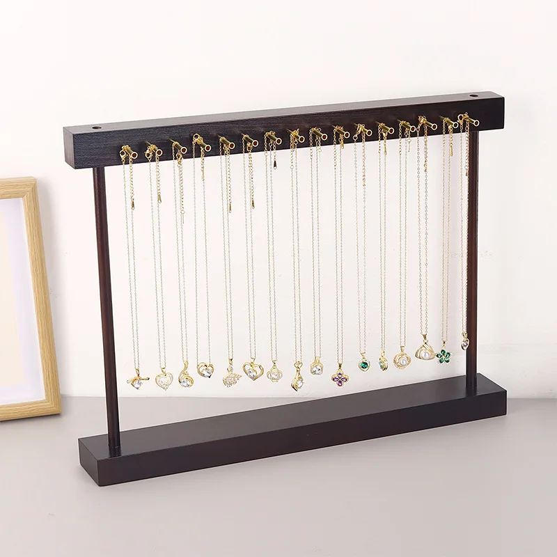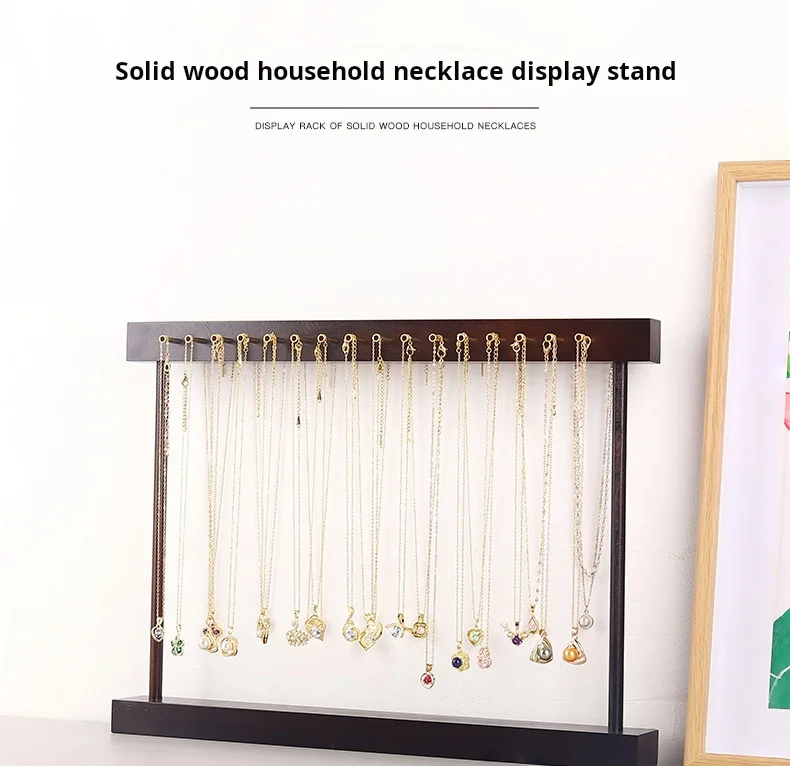 Casual Solid Wood Necklace Display Stand Large Capacity Jewelry Rack Storage Pendant Rack
