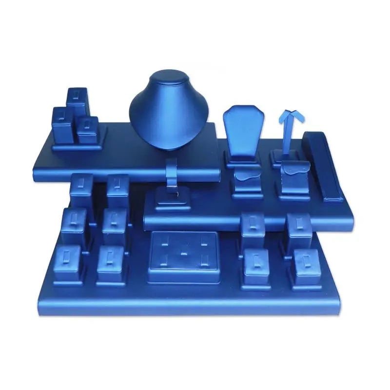 / Custom Blue PU Leather Jewelry Rack Display Stand for Earrings Ring Necklace Jewelry Set