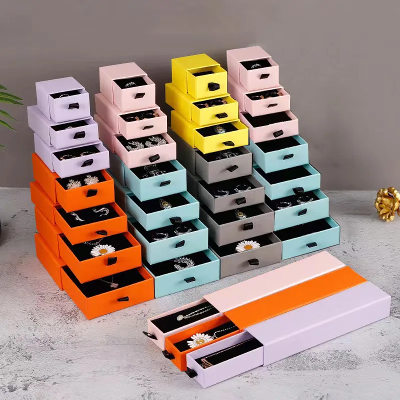 Custom Logo 100 Ring Jewel Case and Packing Box Drawer Jewelry Box
