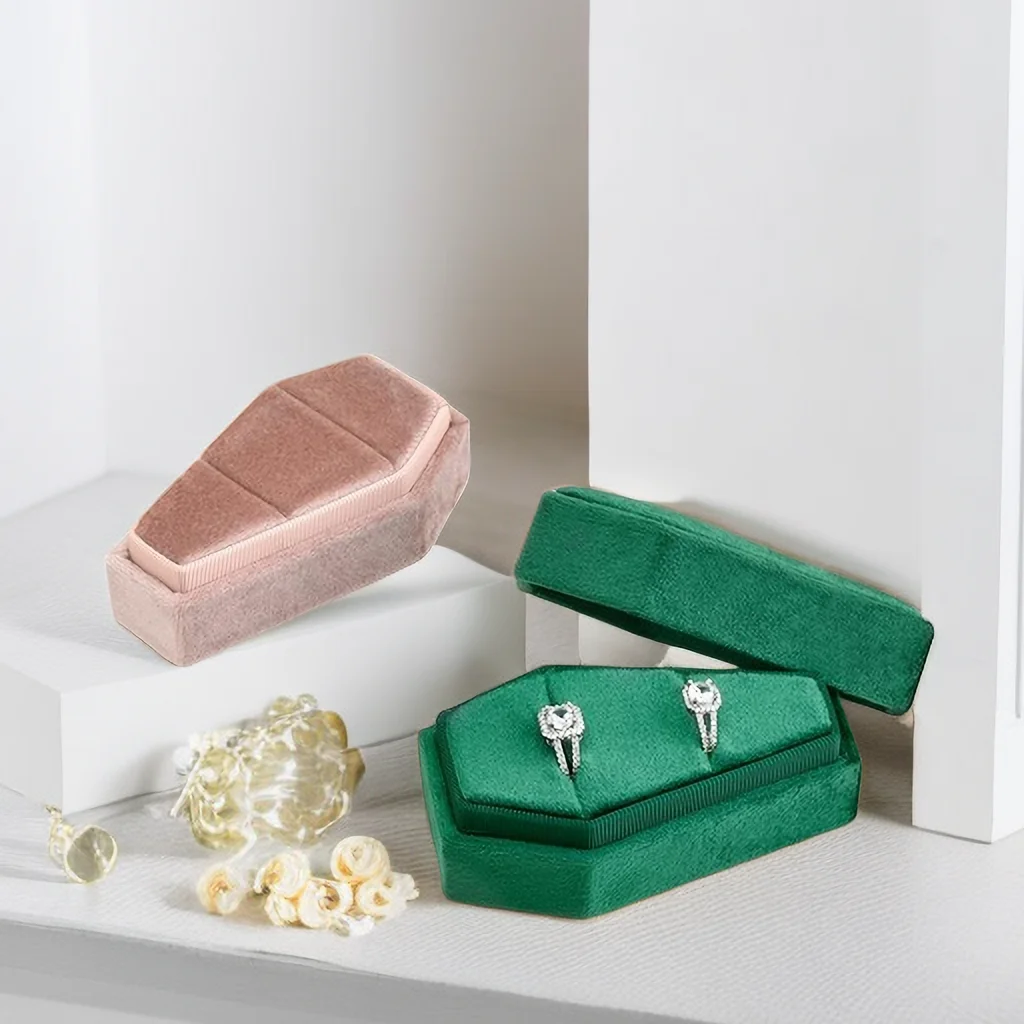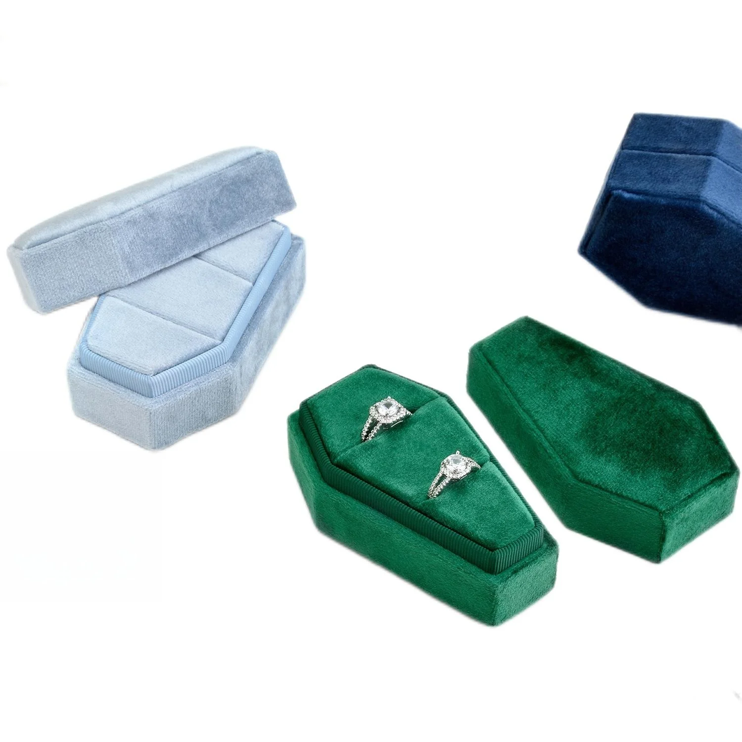 Custom Logo Gothic Velvet Coffin Shape Ring Jewelry Lapel Pin Packaging Gift Box Jewelry Box