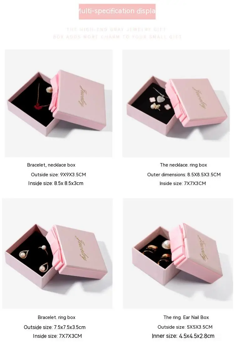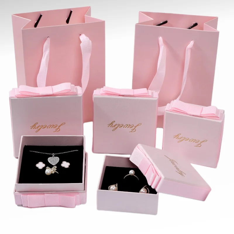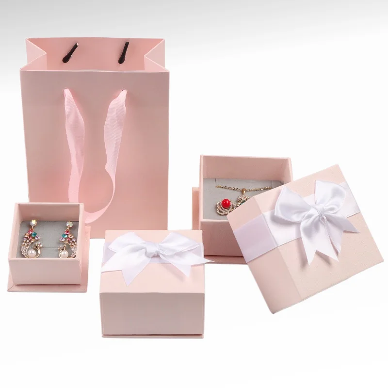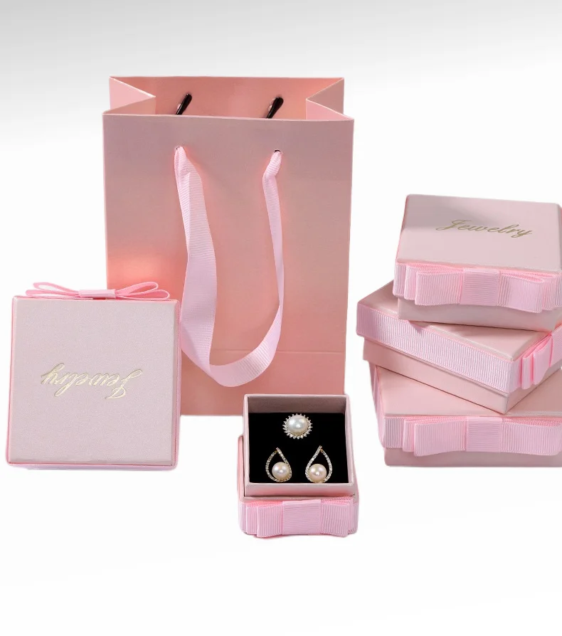 Custom Logo Pink Luxury Portable Whit Lid Rings Gift Packaging Jewelry Set Paper Box
