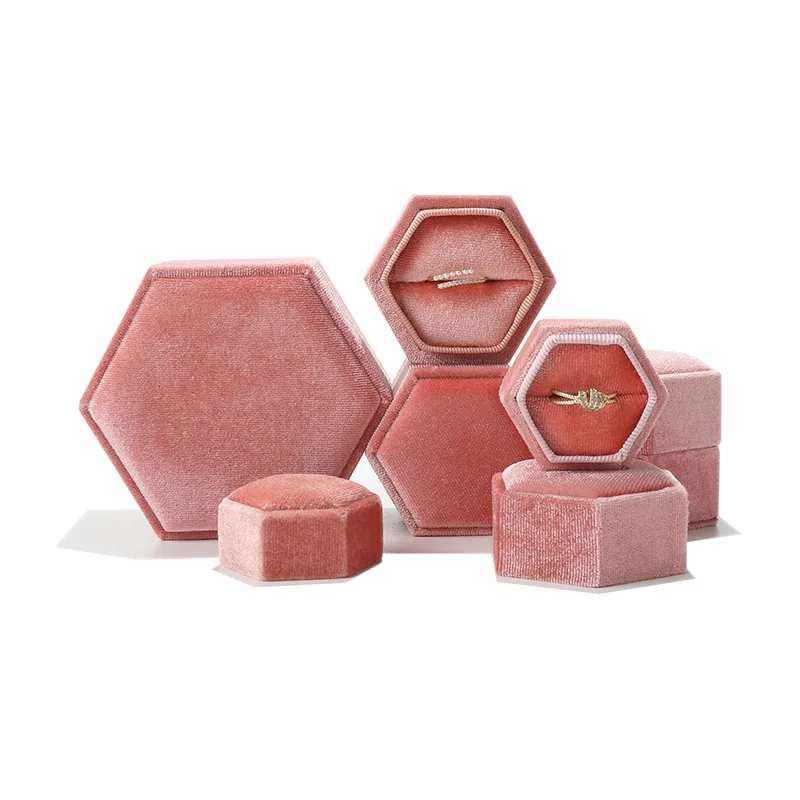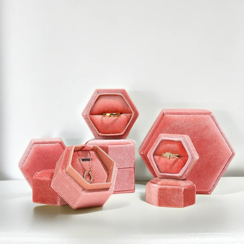 Custom Logo pink Wedding Jewelry Packaging Earring Ring Necklace Velvet Jewelry Gift Box with Bag