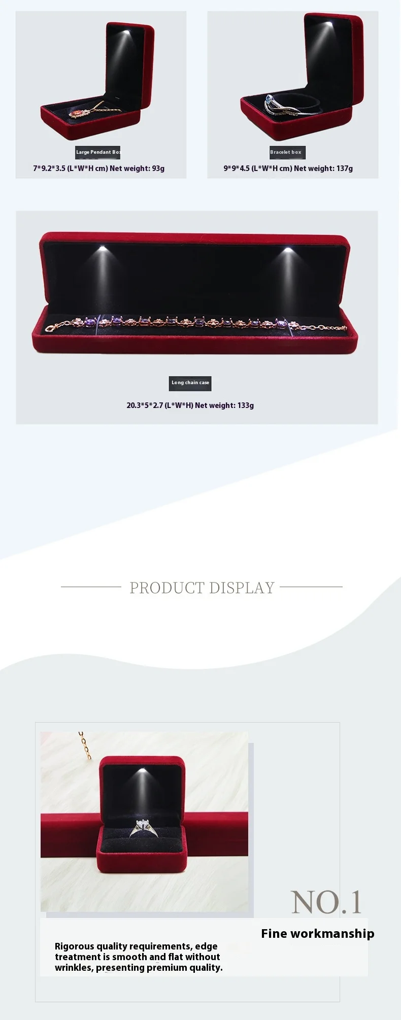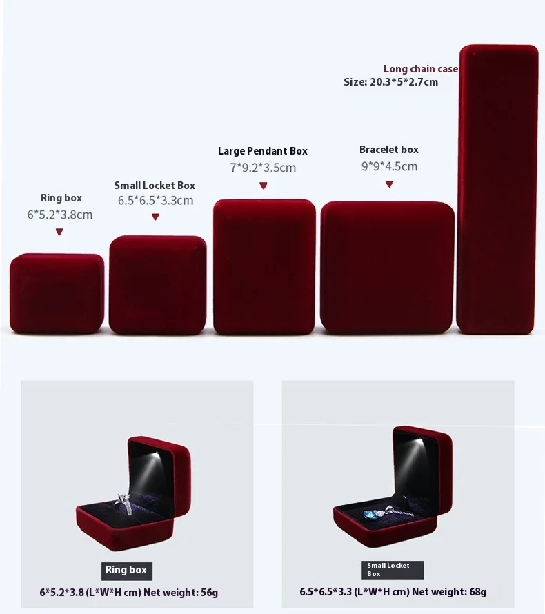 Custom Logo Velvet Lights Lints Flannel Case Necklace Bracelet Bangle Jewelry Packaging Ring Box Jewelry Boxes With LED
