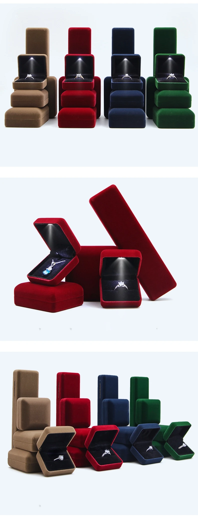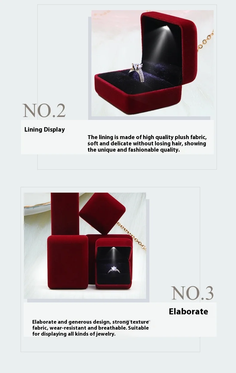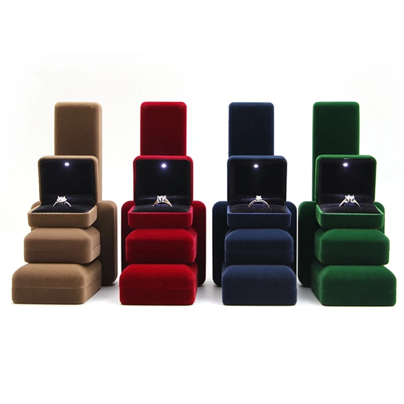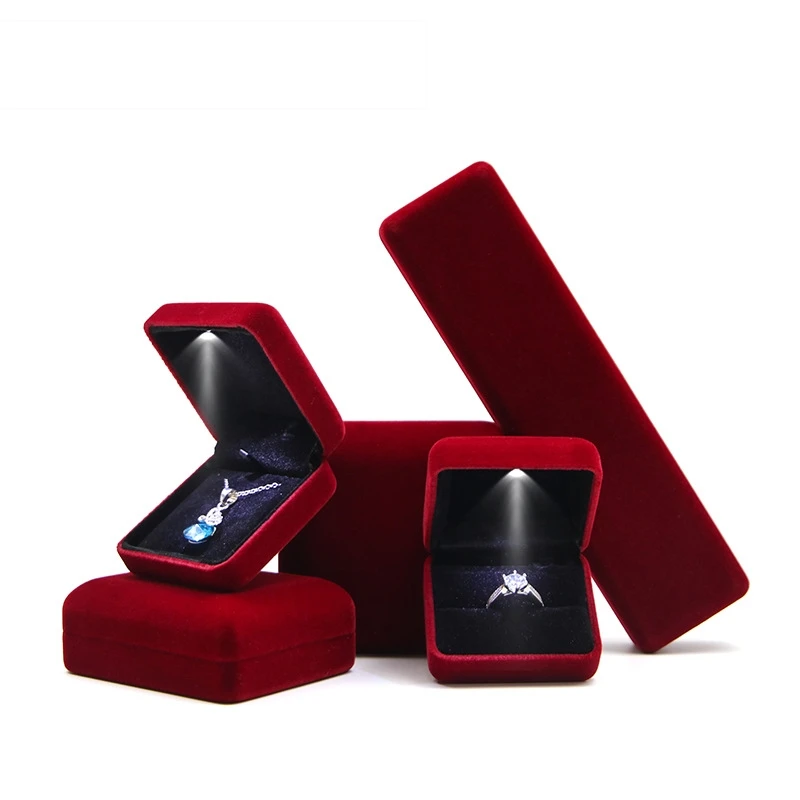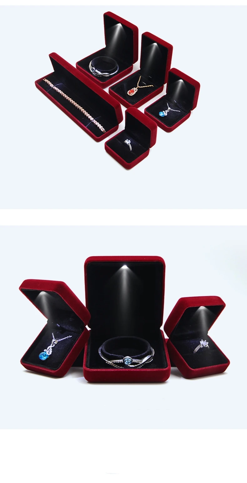 / Custom Logo Velvet Lights Lints Flannel Case Necklace Bracelet Bangle Jewelry Packaging Ring Box Jewelry Boxes With LED