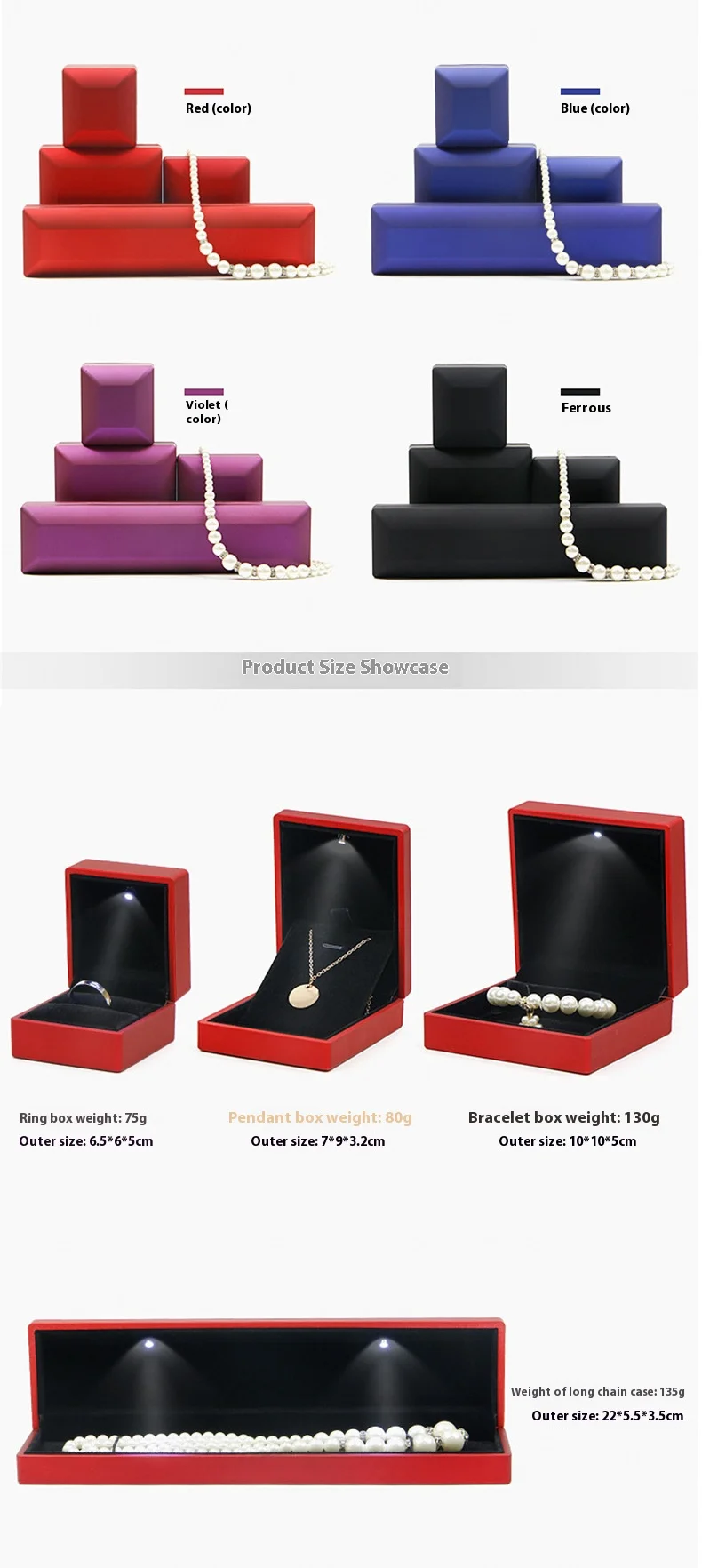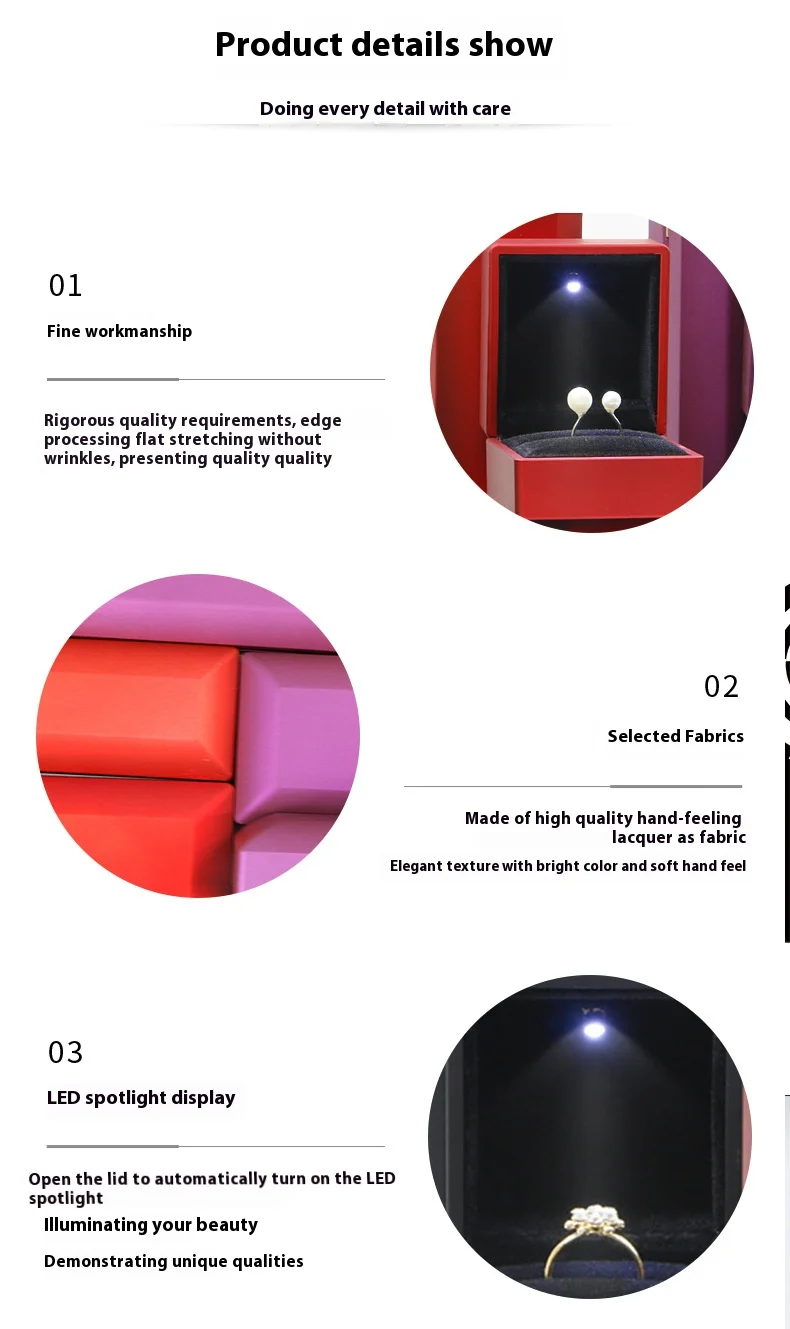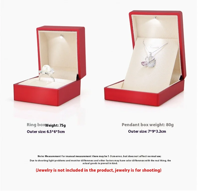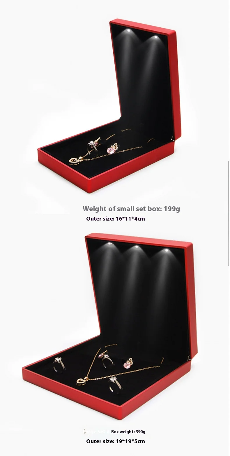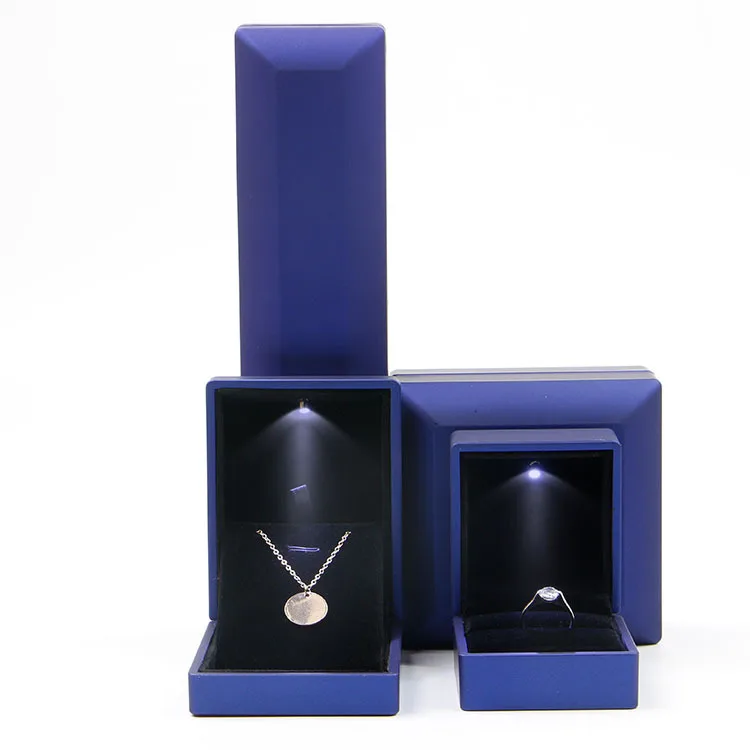 Custom Luxury Black Plastic Gift Logo Set Velvet Light up Led Necklace Ring Jewelry Jewellery Packaging Box With Led Light