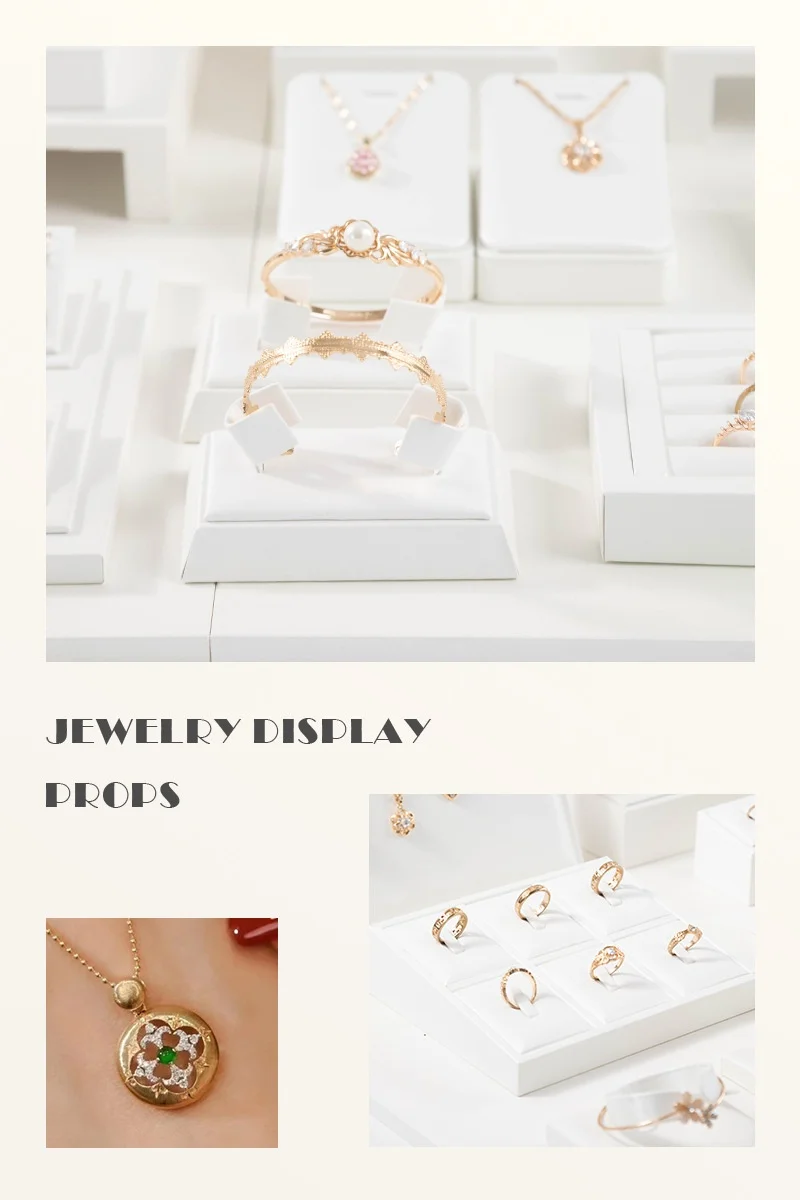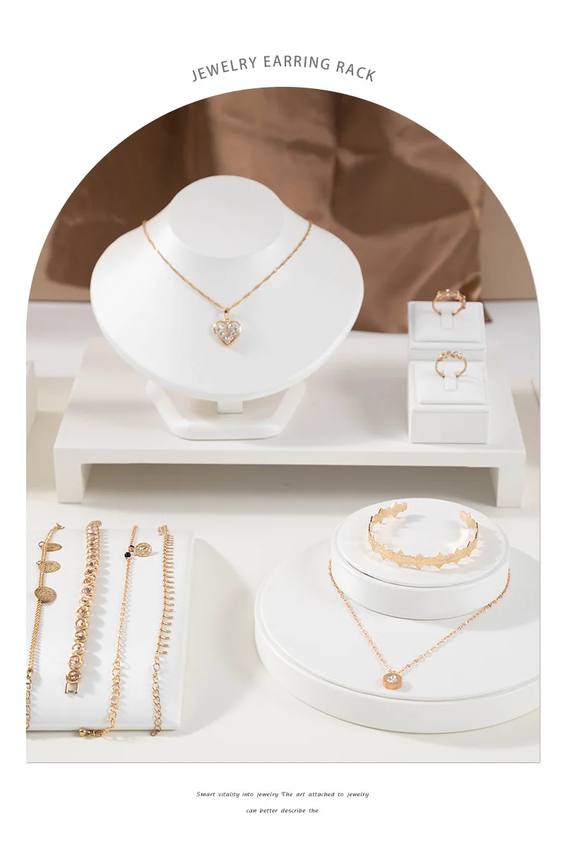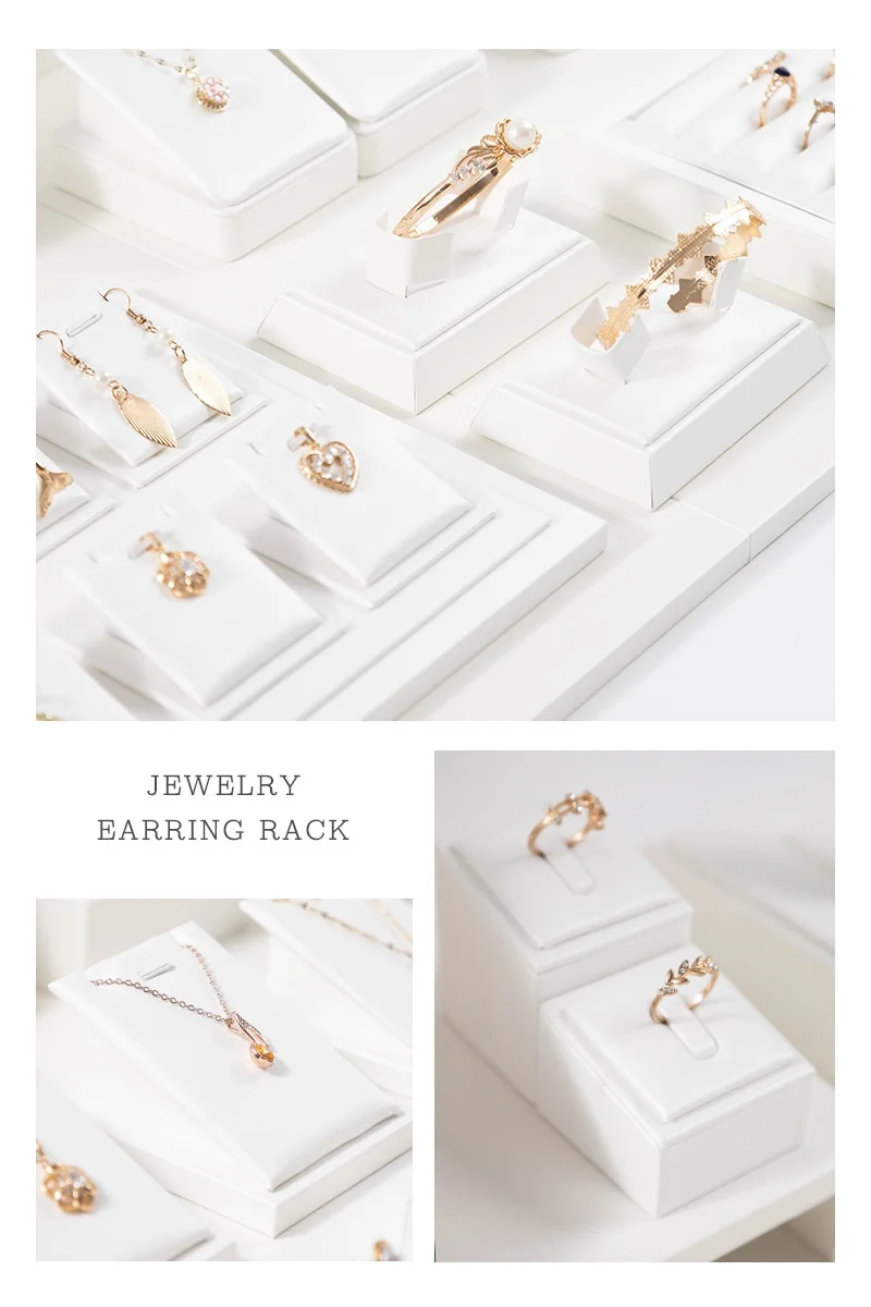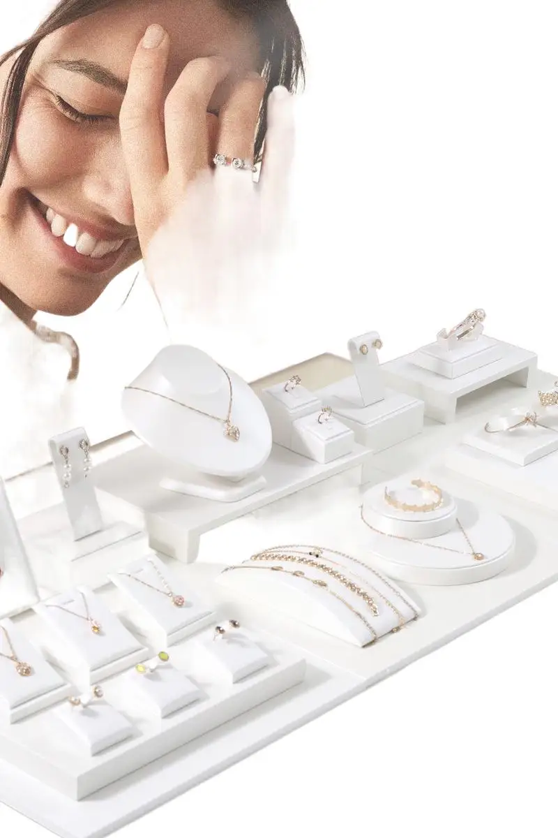 / Custom Wholesale White Pu Leather Bracelet Ring Necklace Jewelry Display Stand Jewelry Display Set