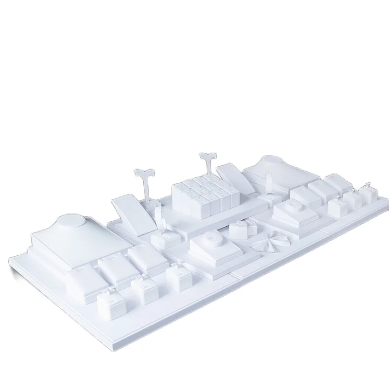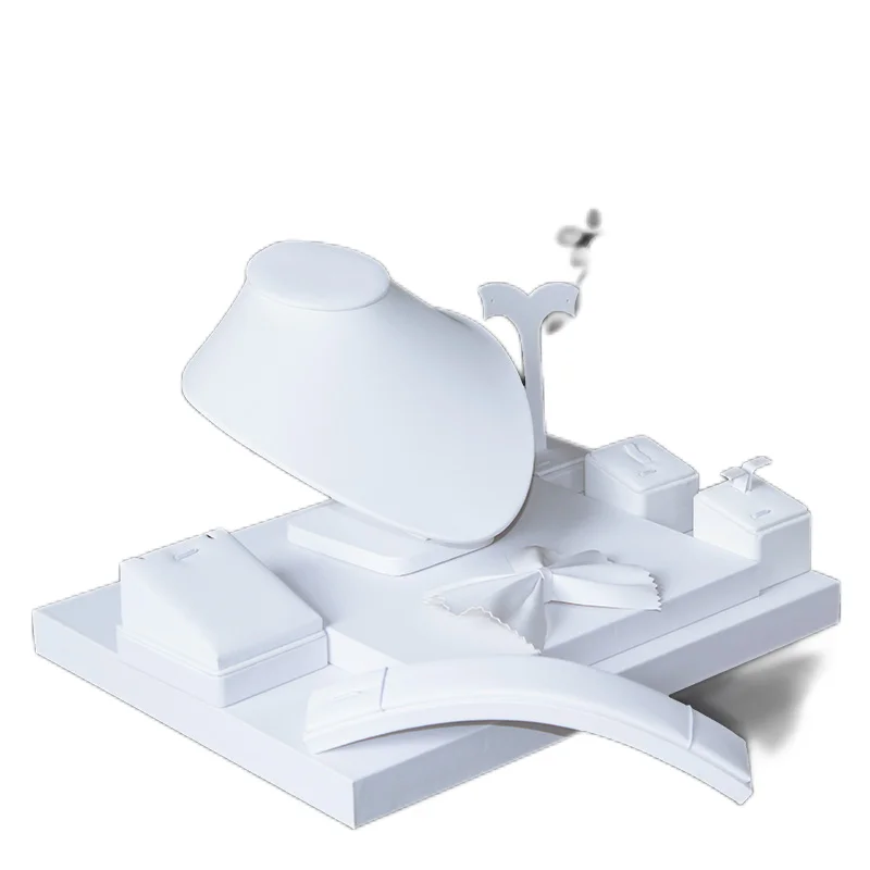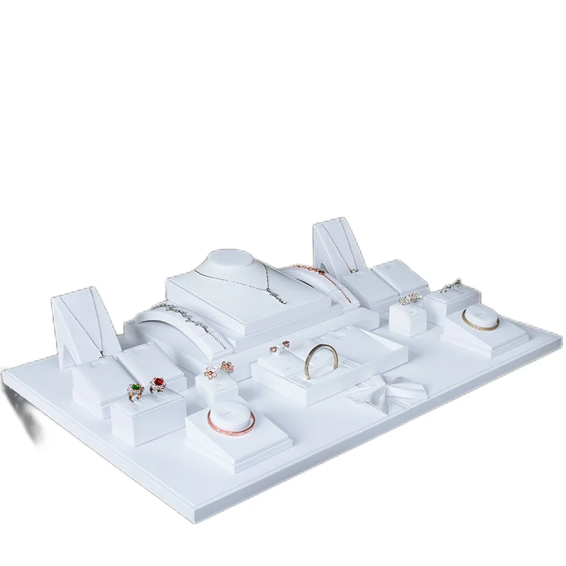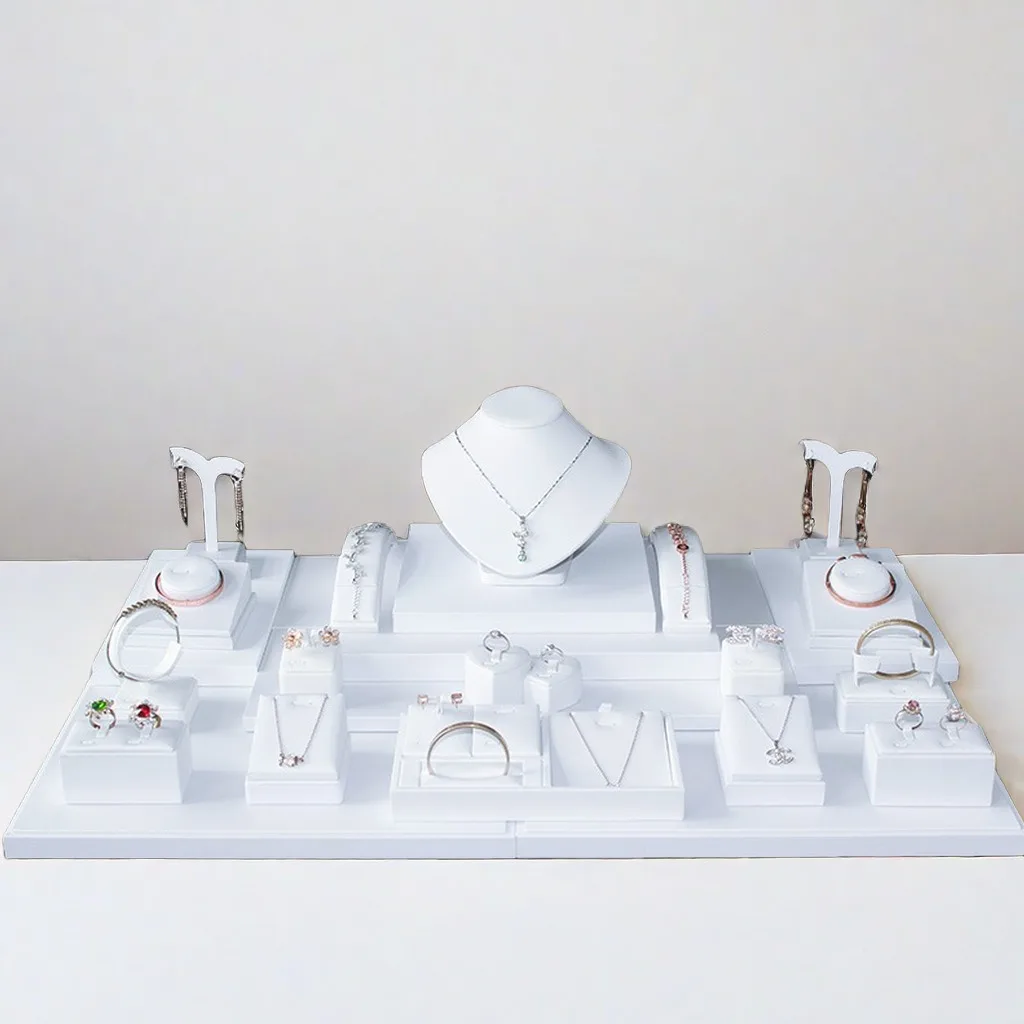 / Custom Wholesale White Pu Leather Bracelet Ring Necklace Jewelry Display Stand Jewelry Display Set