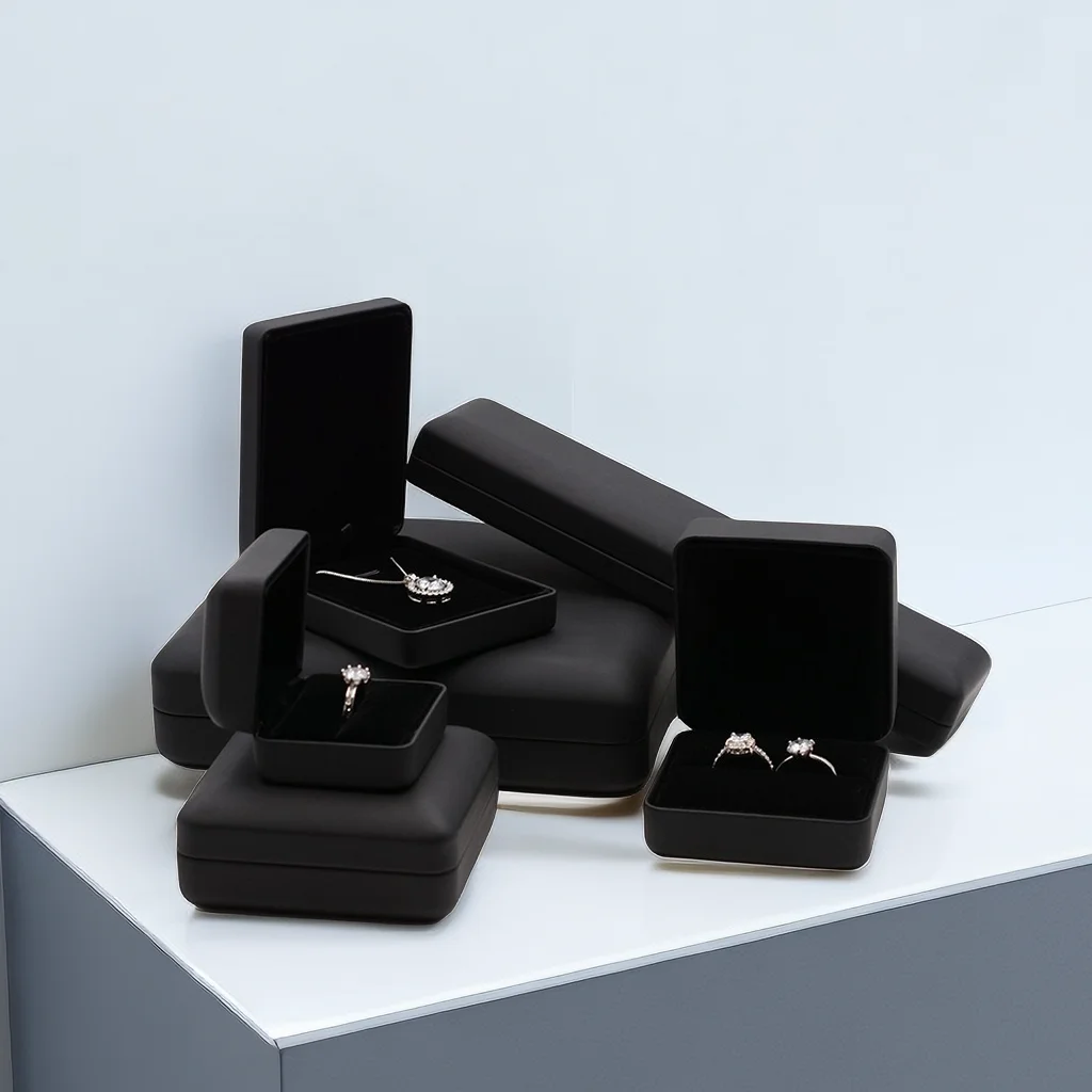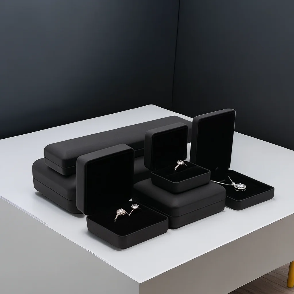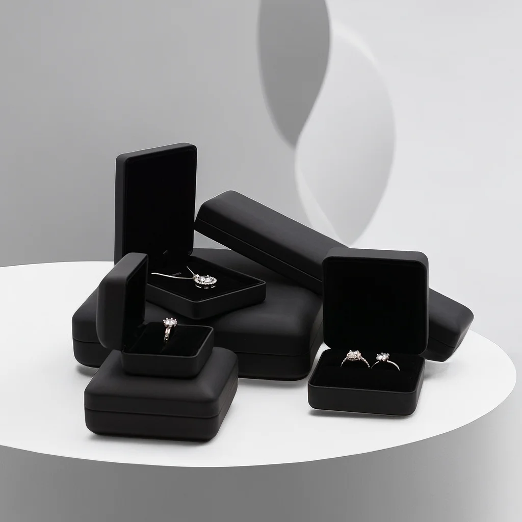 Custom with Logo Black PU Leather Ring Box Pedant Box Jewelry Packaging Box