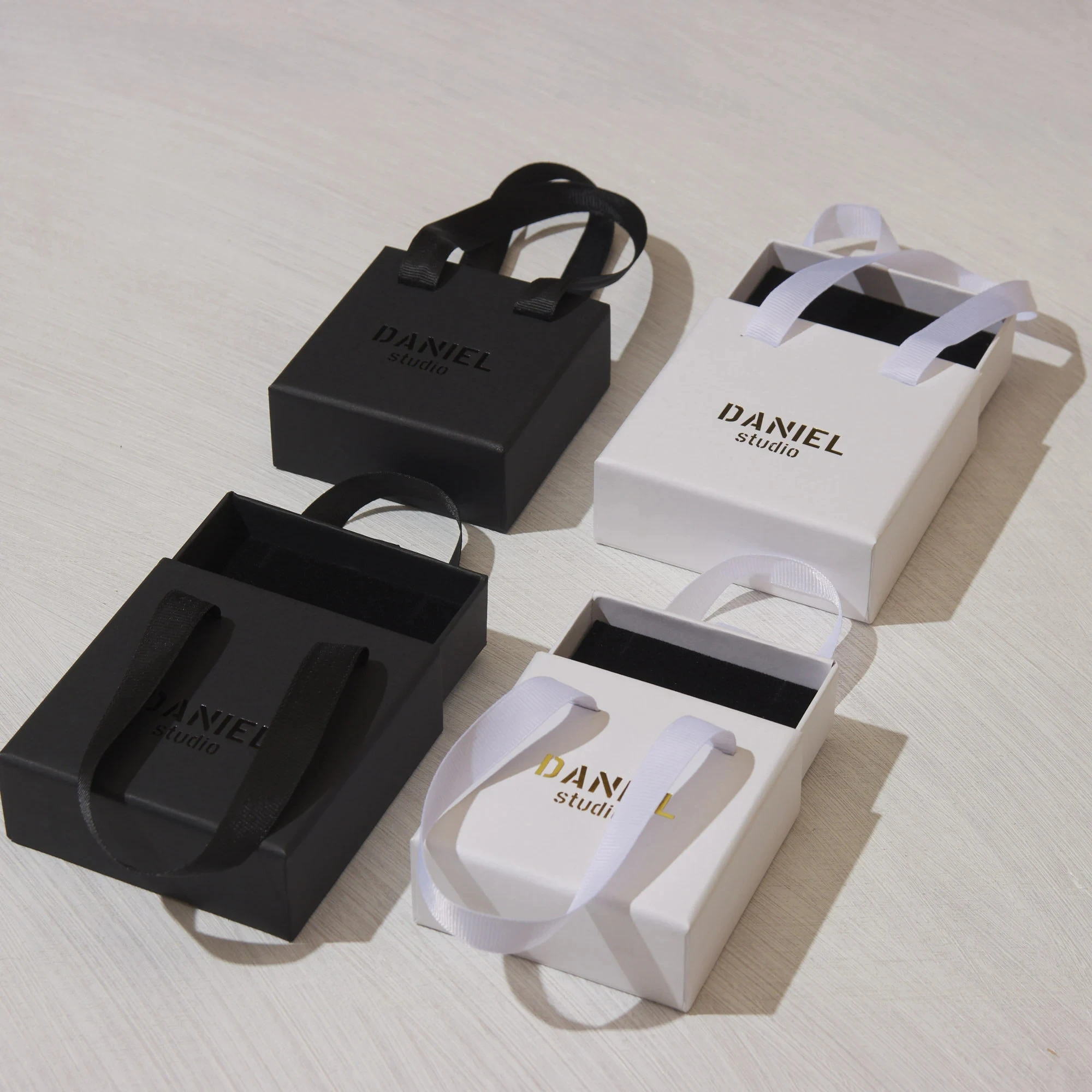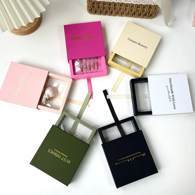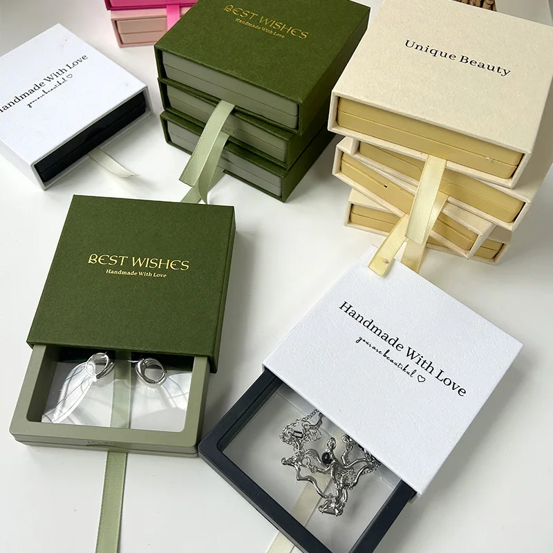 / Customizable 8x8cm Jewelry Drawer Box Tote Paper Slide String for Necklace Earrings Ring Packaging Premium Jewelry Boxes
