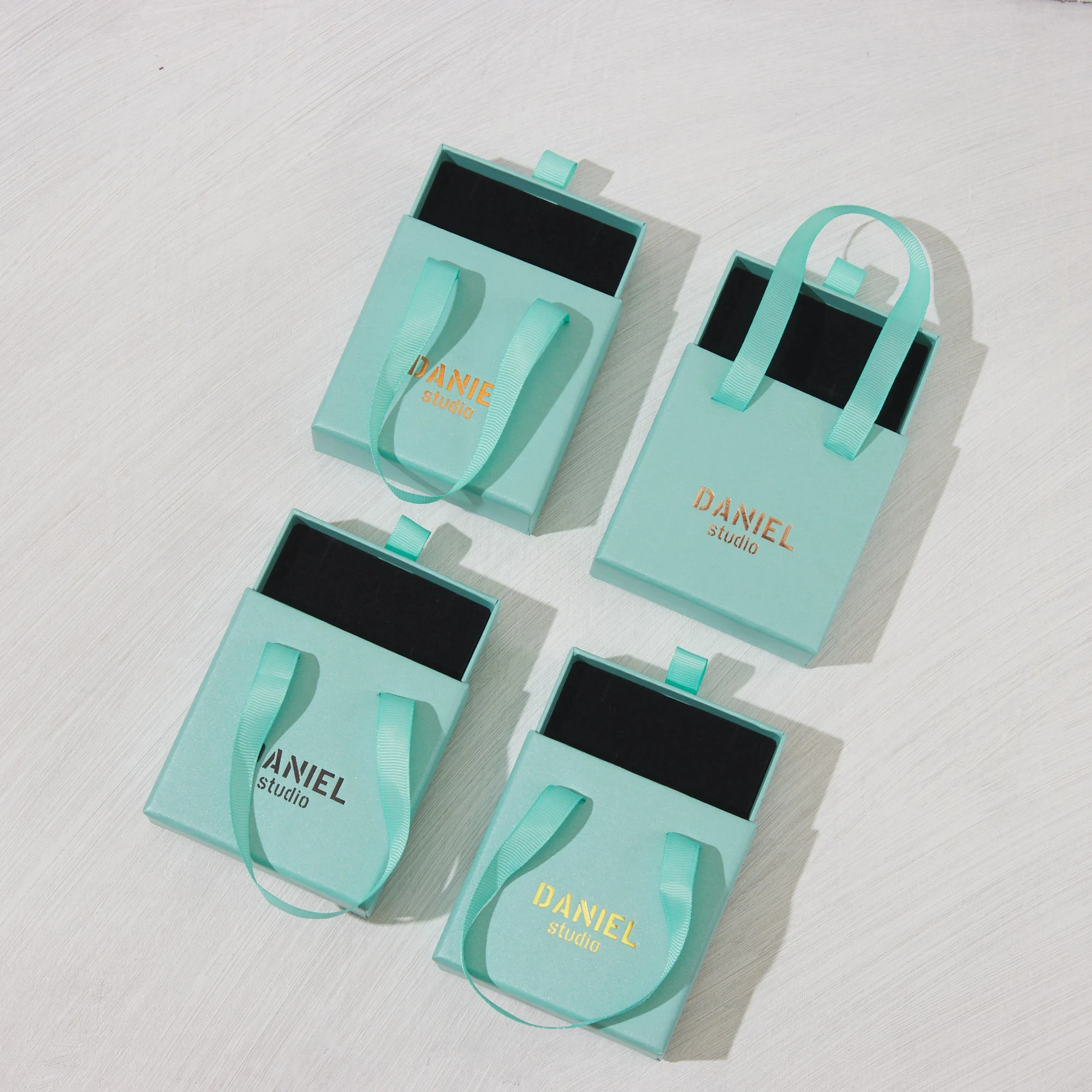 Customizable 8x8cm Jewelry Drawer Box Tote Paper Slide String for Necklace Earrings Ring Packaging Premium Jewelry Boxes