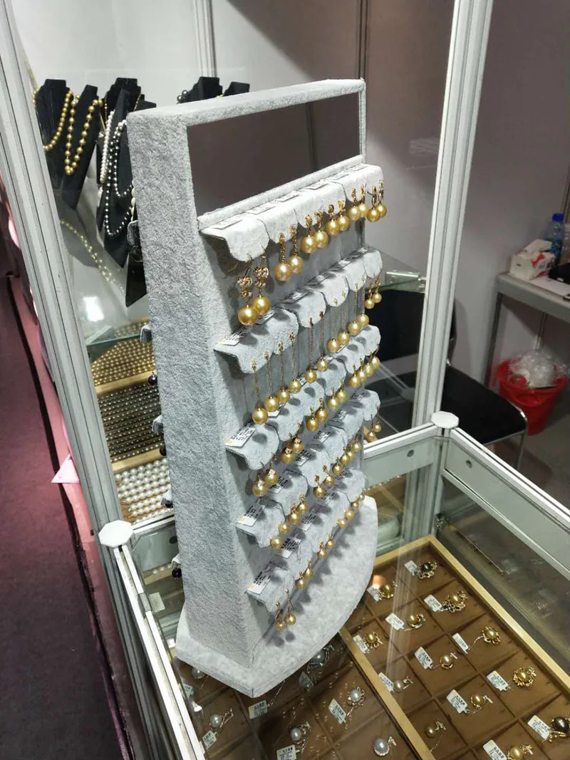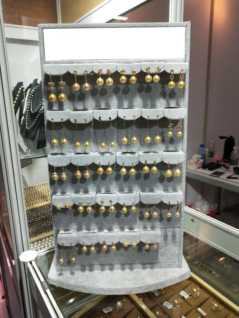 / Customized Ice Gray Velvet Double-sided Earrings Rotating Display Rack with 60 Pairs of Pendants Display Props Stand