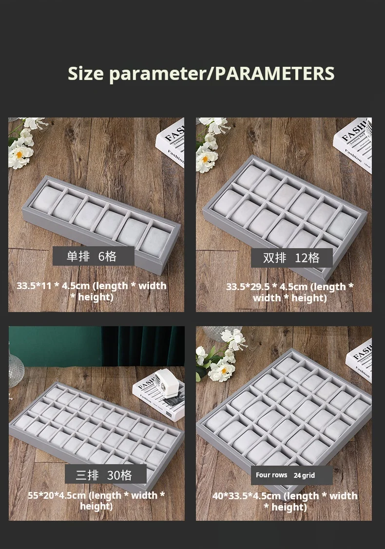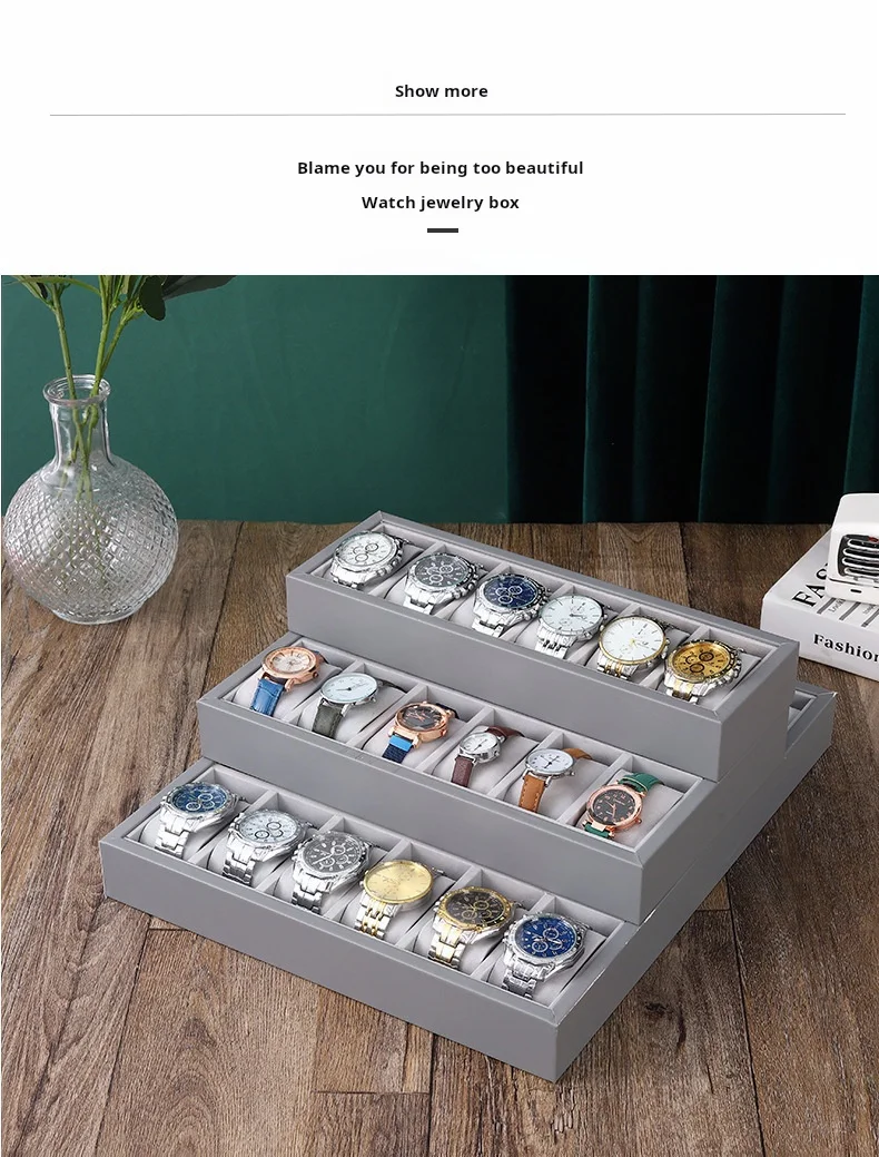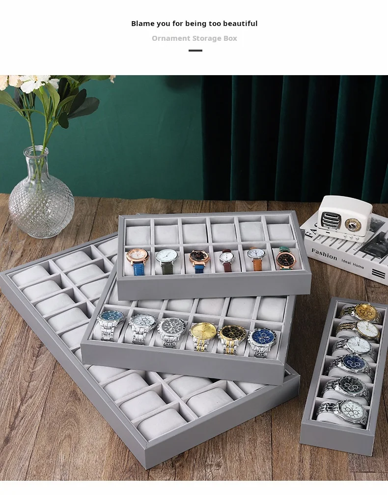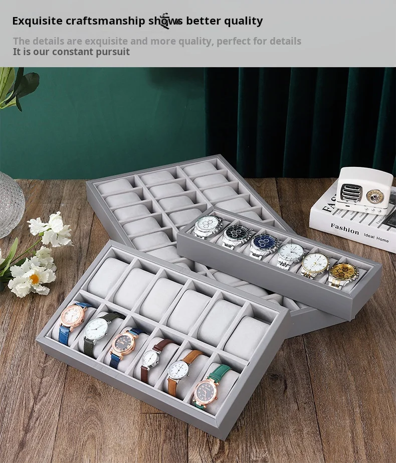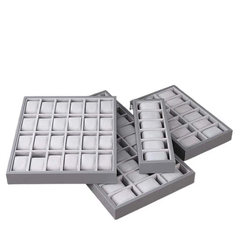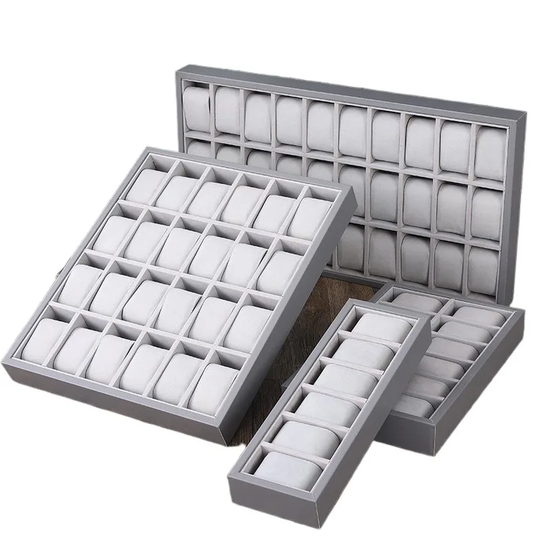 Gray Leather Watch Counter Display Rack Storage Watch Display Tray