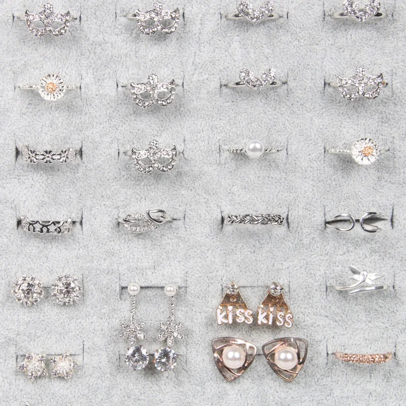 Gray Velvet Ring Display Rack 50-bit Ring Holder Jewelry Rack