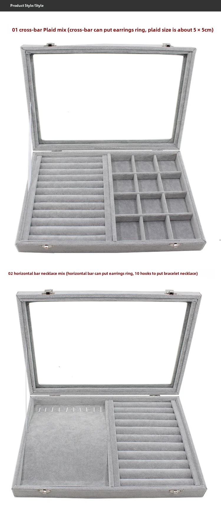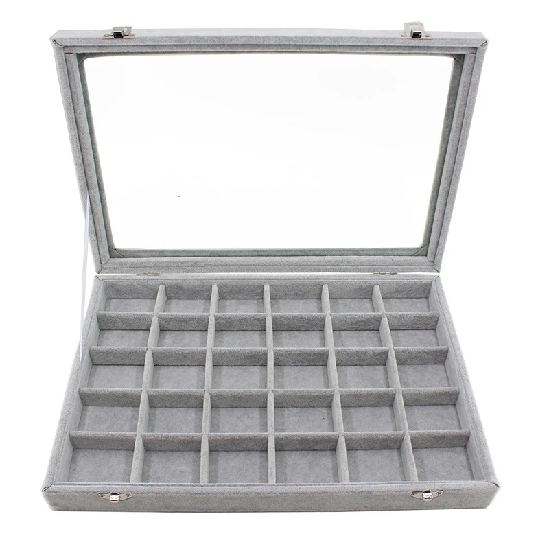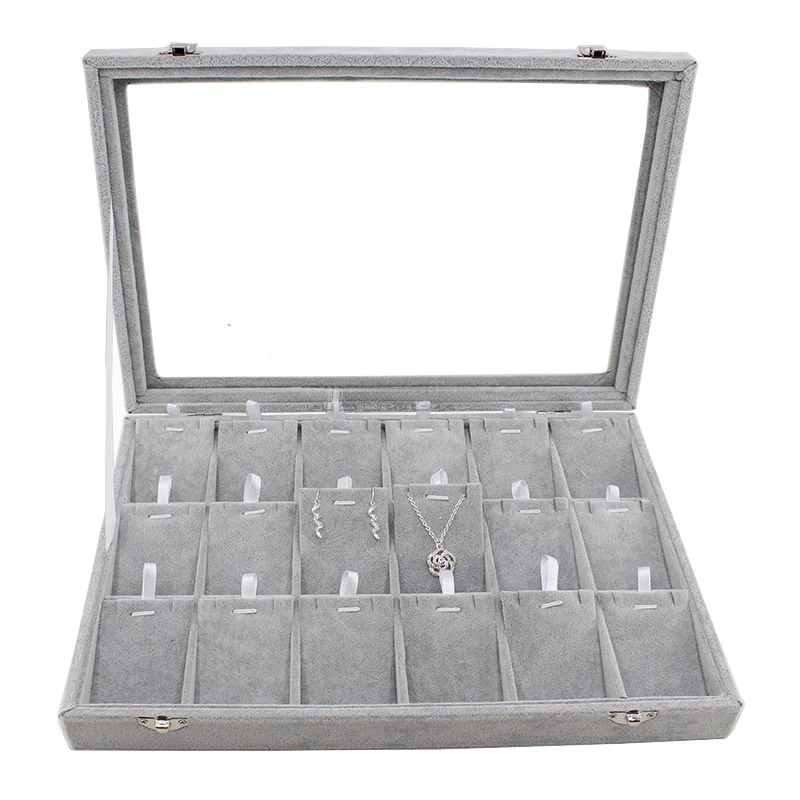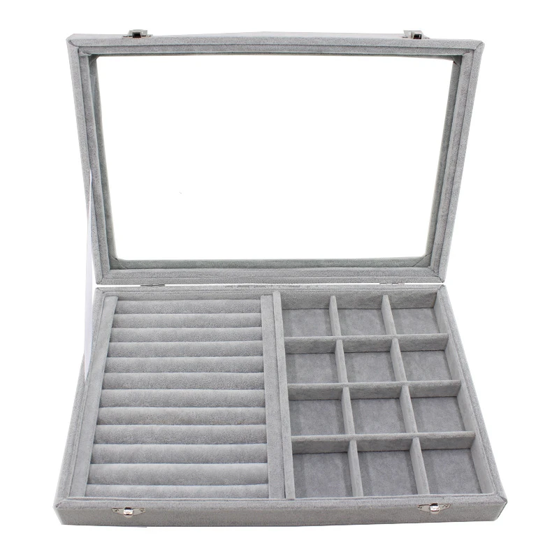 / Gray with Transparency Cover Ice Crytal Velvet Jewelry Box Necklace Ring Stud Earrings Bracelet Earrings Storage Box Display Tra