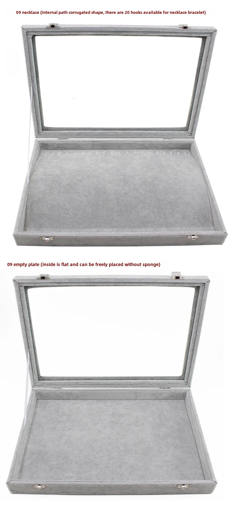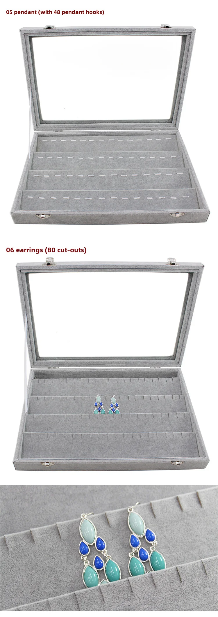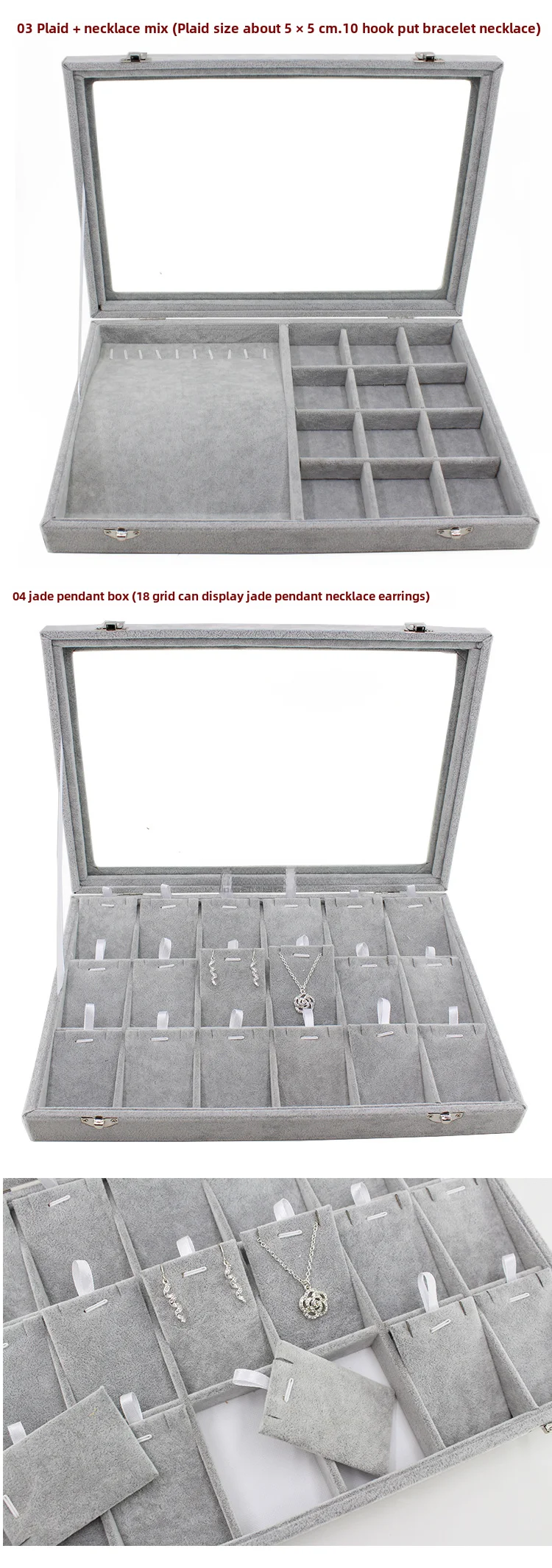 / Gray with Transparency Cover Ice Crytal Velvet Jewelry Box Necklace Ring Stud Earrings Bracelet Earrings Storage Box Display Tra