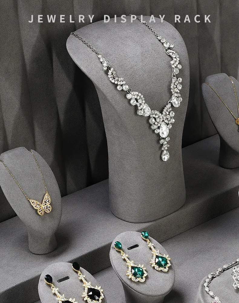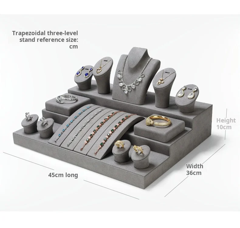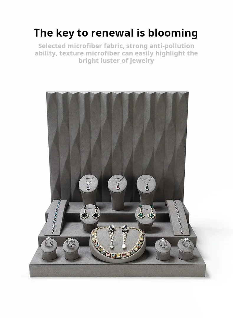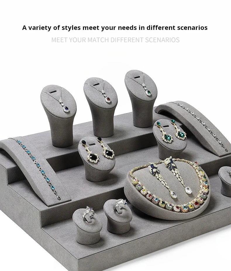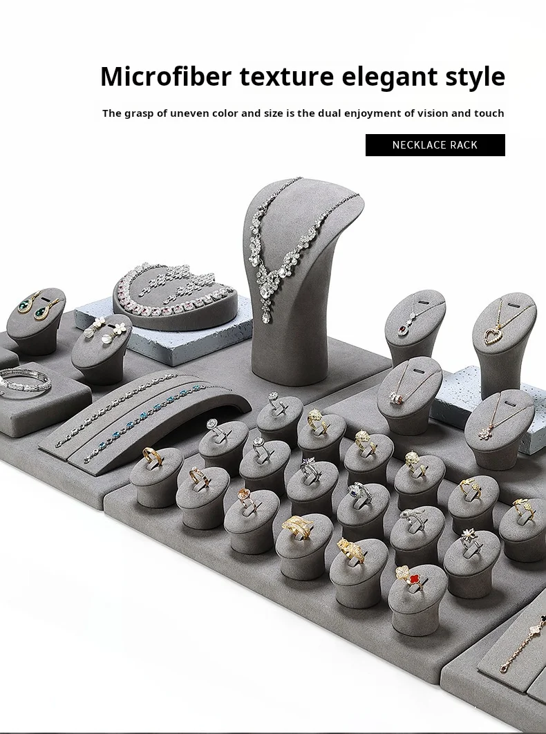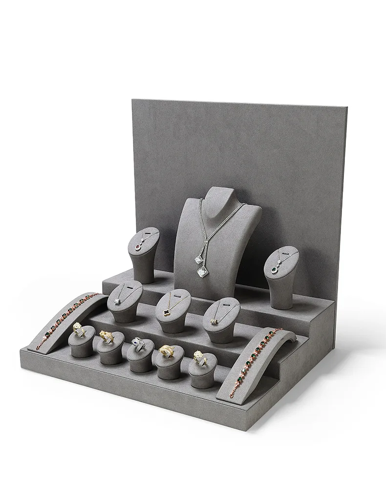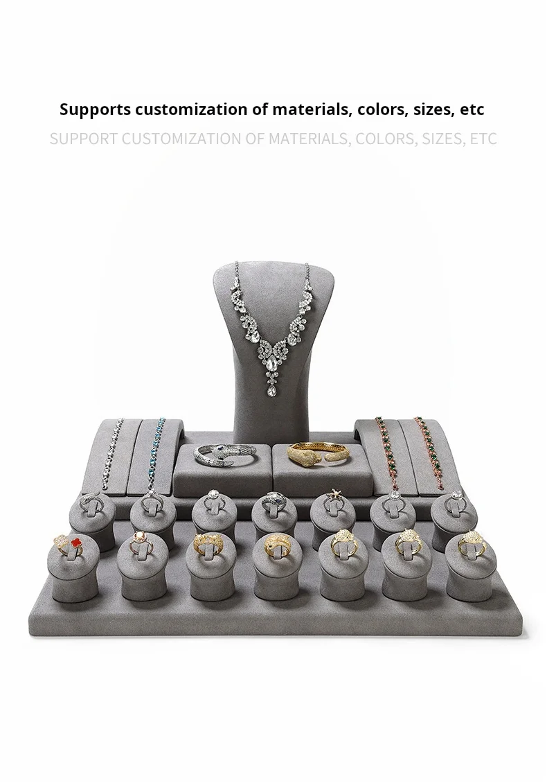 Grey Microfiber DIY Jewellery Display Stand Holder Custom Bracelet Necklace Ring Earring Holder Jewelry Display Stand Set