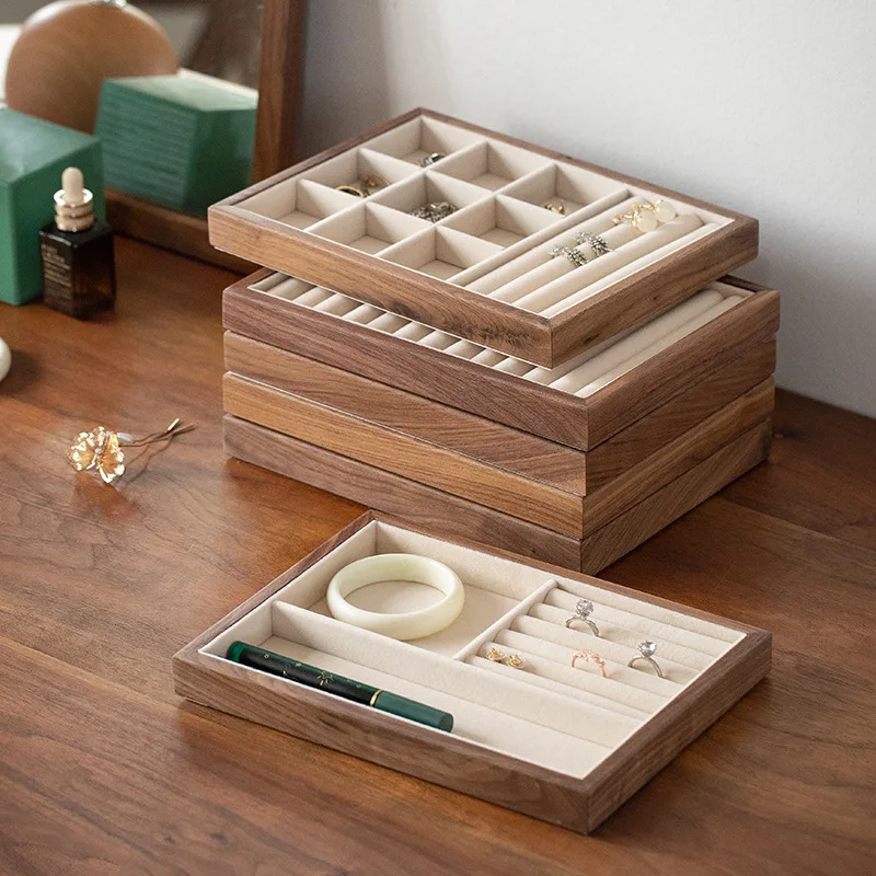 / High-end Boutique Jewelry Salver Tray Necklaces Earrings Bracelets Ringsblack Walnut Wood Jewelry Salver Tray