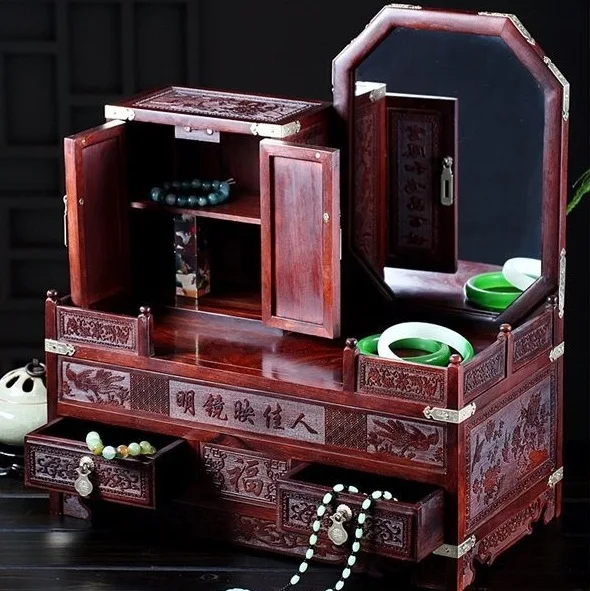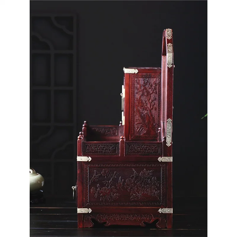 High-end Mahogany Red Rosewood Desktop Dressing Table New Chinese Style Small Carved Makeup Mirror Jewelry Box