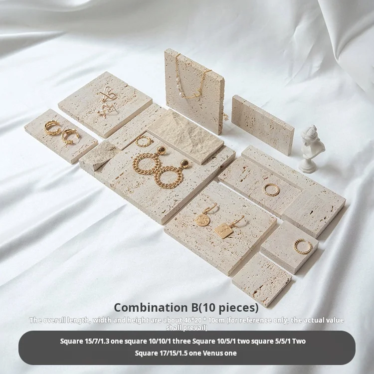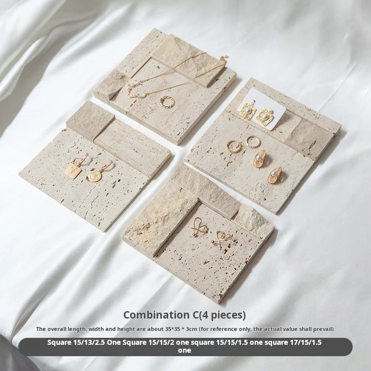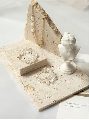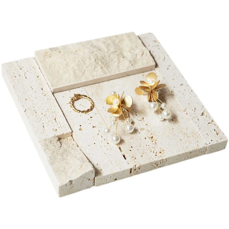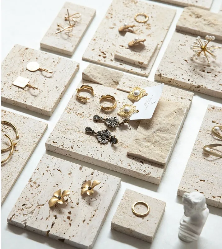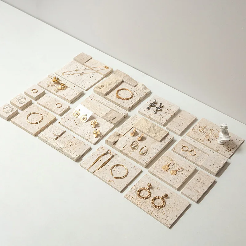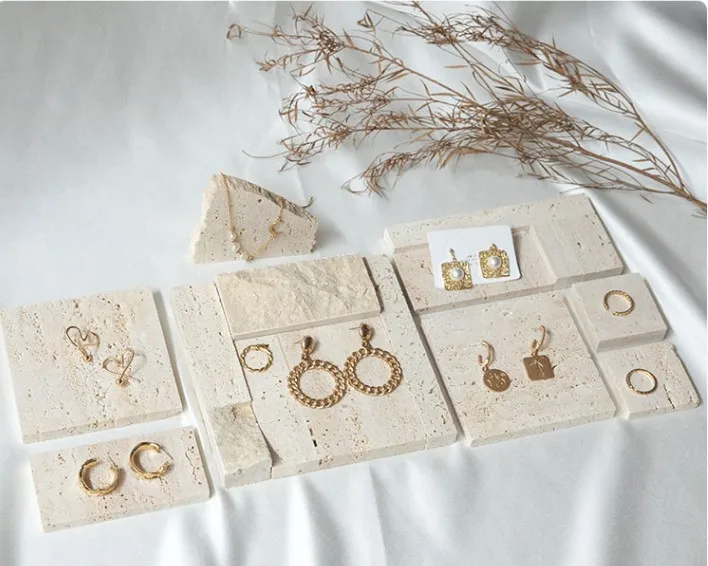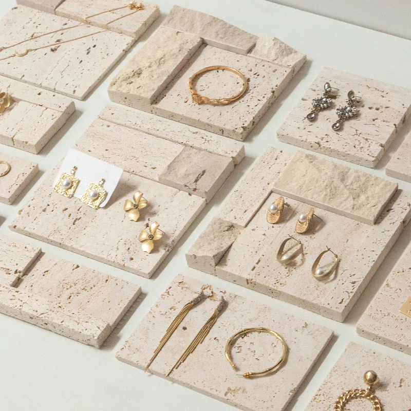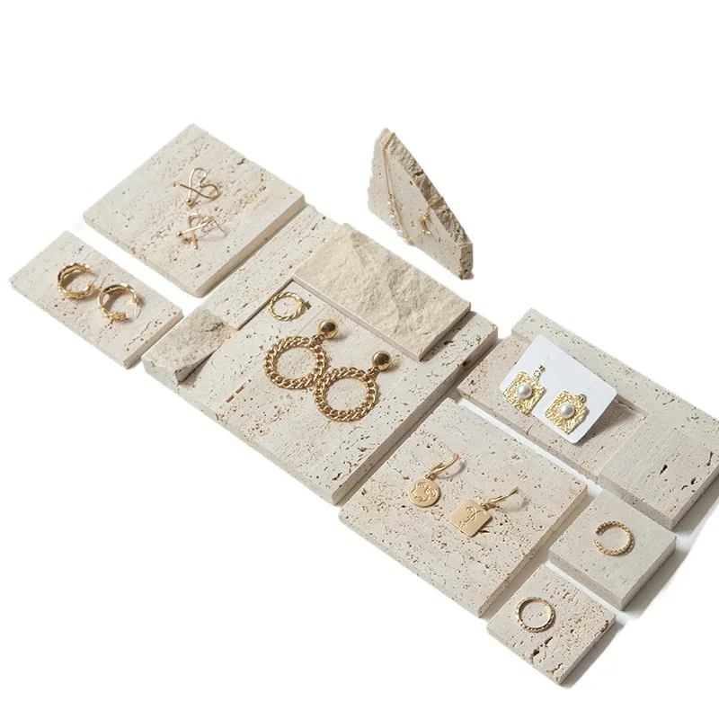 / High-end Natural Stone Beige Travertine Jewelry Stand Earrings Counter Display Set
