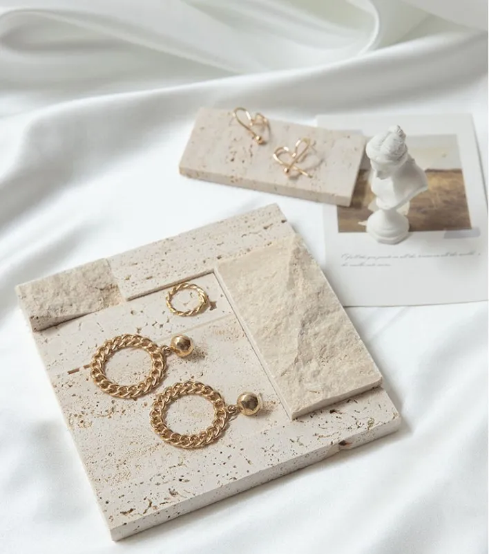 High-end Natural Stone Beige Travertine Jewelry Stand Earrings Counter Display Set
