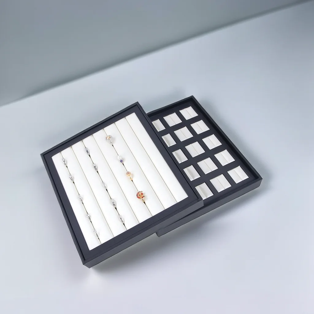 / High-end PU Leather Jewelry Organizer Tray Set for Earring Ring Necklace Jewelry Display Stackable Storage Jewelry Tray