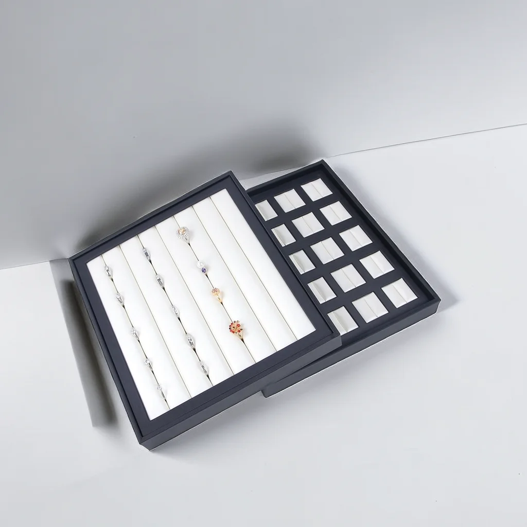 High-end PU Leather Jewelry Organizer Tray Set for Earring Ring Necklace Jewelry Display Stackable Storage Jewelry Tray