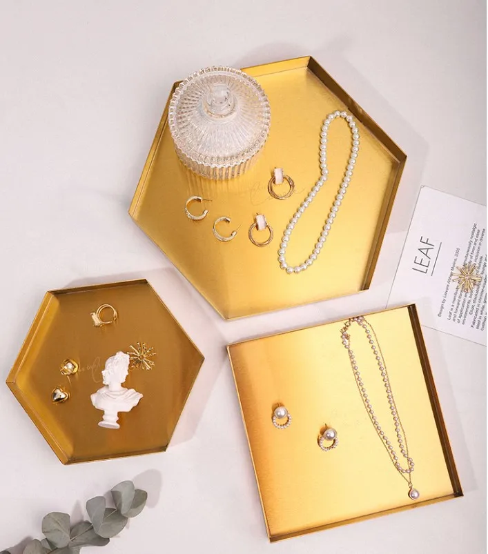 / High-End Stainless Steel Gold Metal Ornament Display Storage Tray
