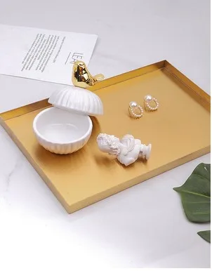 High-End Stainless Steel Gold Metal Ornament Display Storage Tray