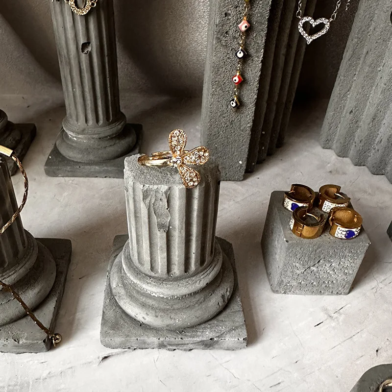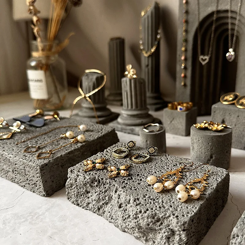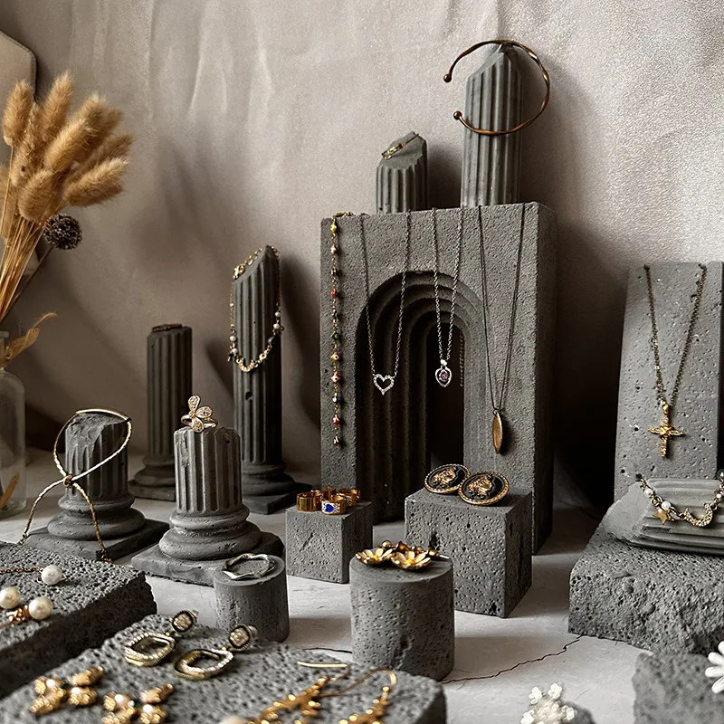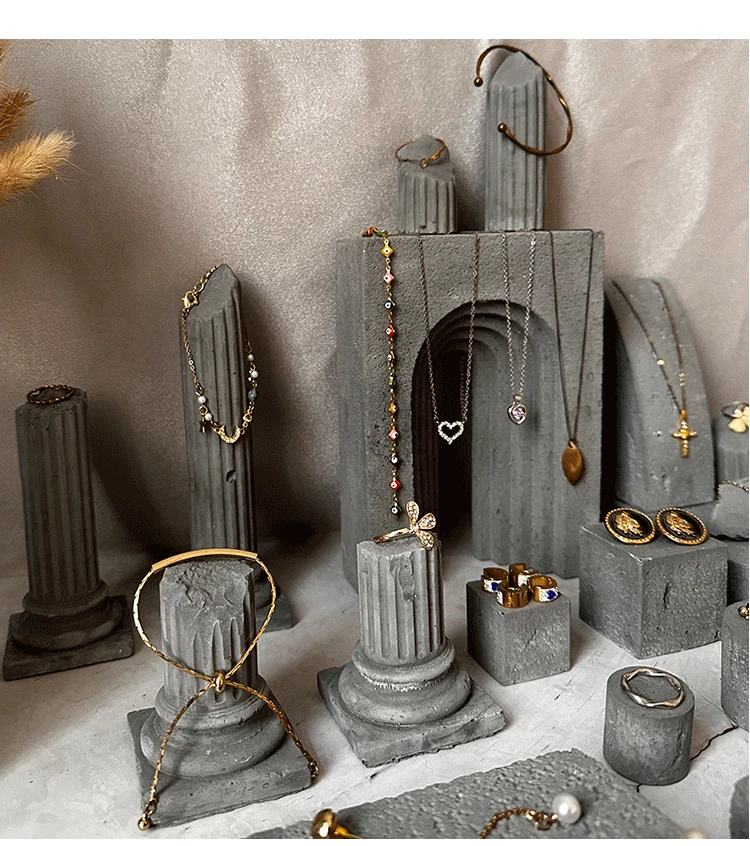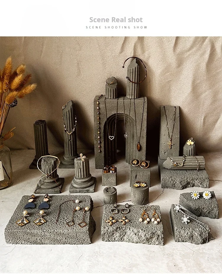 High End Stone Gypsum Cement Grey Jewelry Display Stand