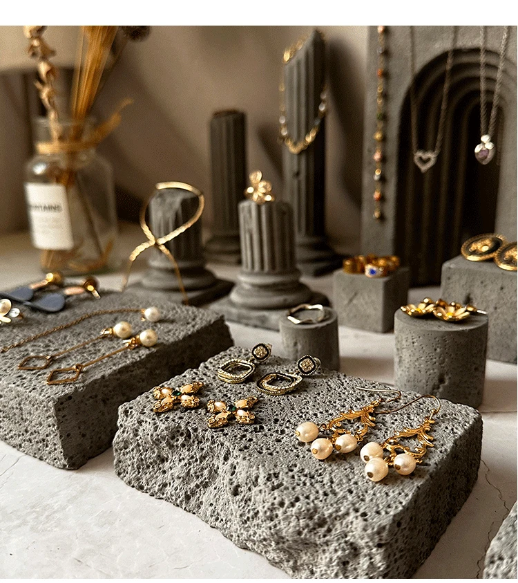 / High End Stone Gypsum Cement Grey Jewelry Display Stand