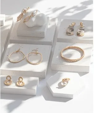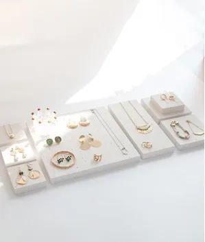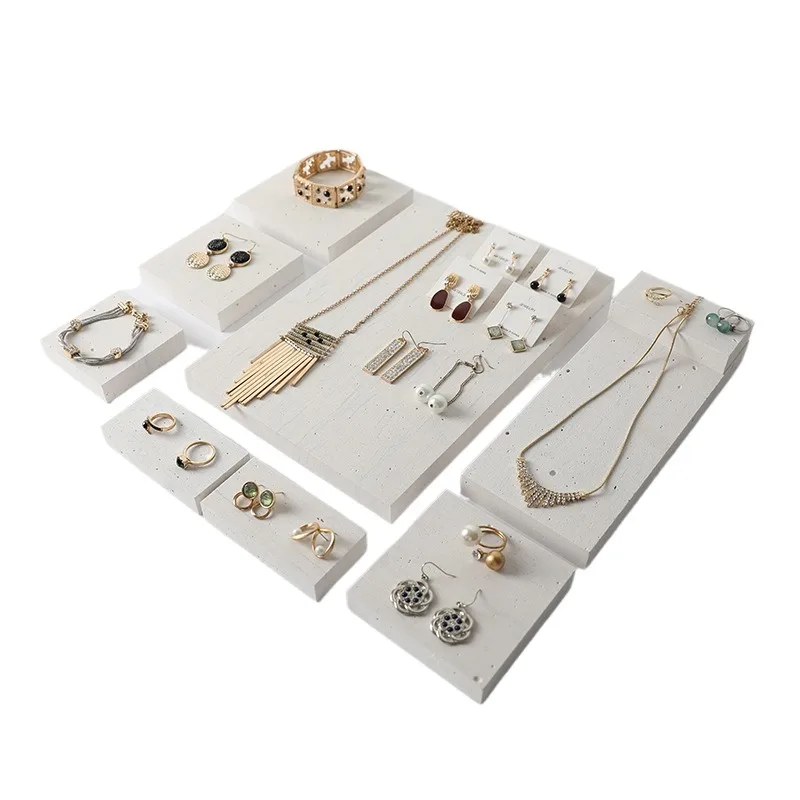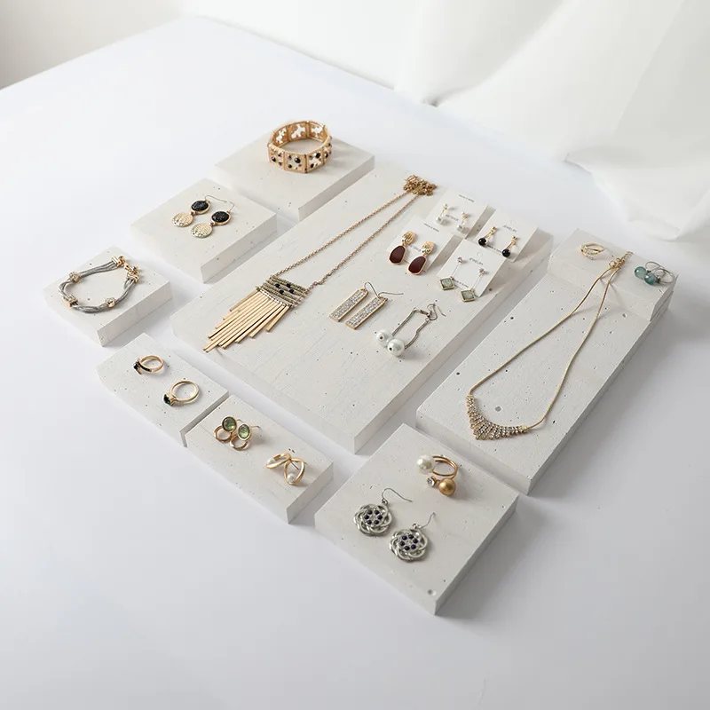 High-End White Marble Geometric Stone Jewelry Display Stand Shop Earrings Necklace Ring Storage Display Set